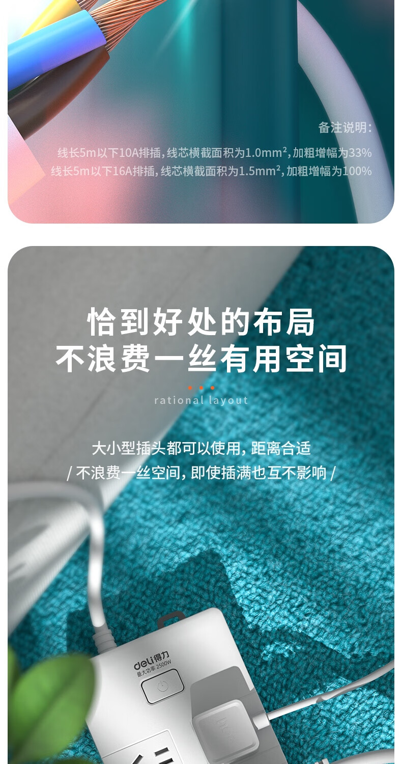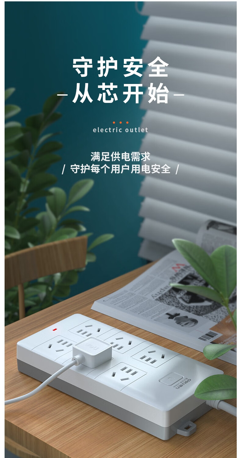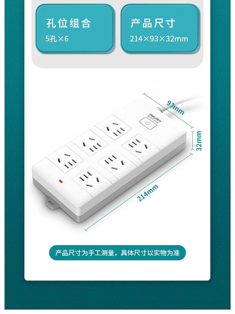 商品名稱:得力18168-05 插座 多功能插排/插線板/拖線板/接線板/電插板/插座板 6位5米 (白)(只)