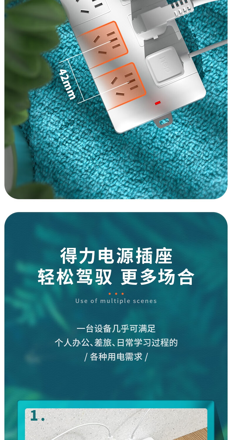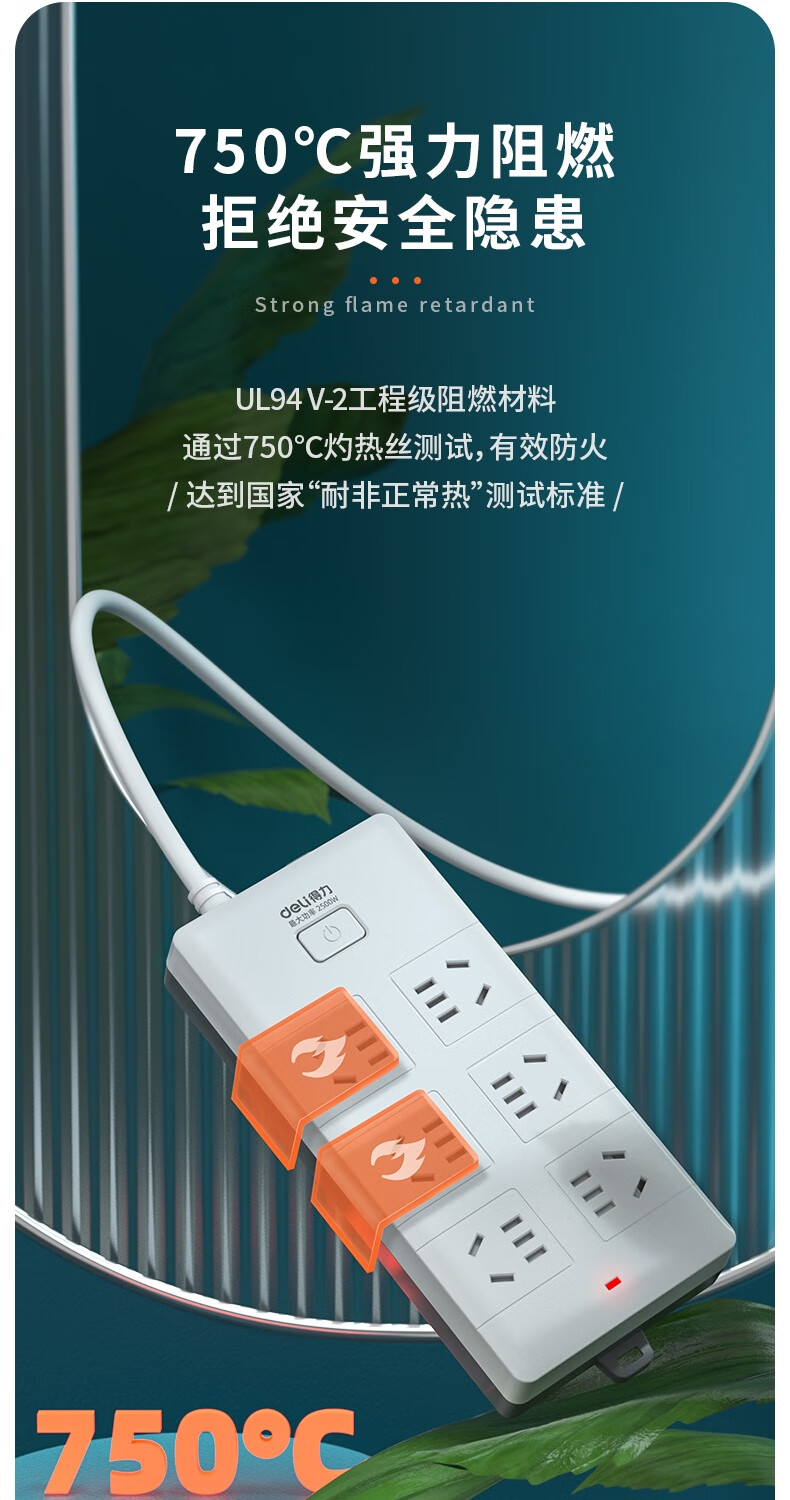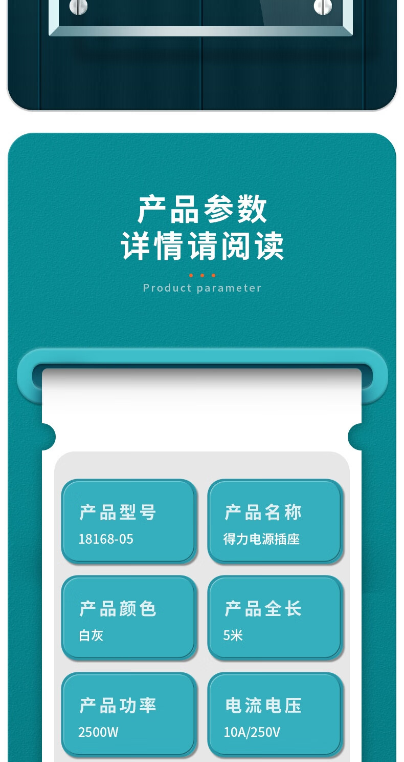 商品名稱:得力18168-05 插座 多功能插排/插線板/拖線板/接線板/電插板/插座板 6位5米 (白)(只)
