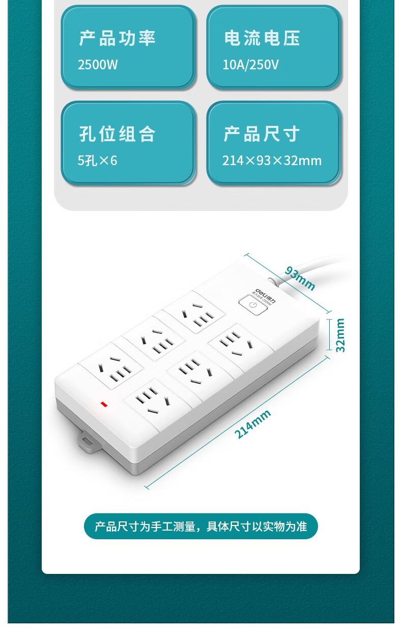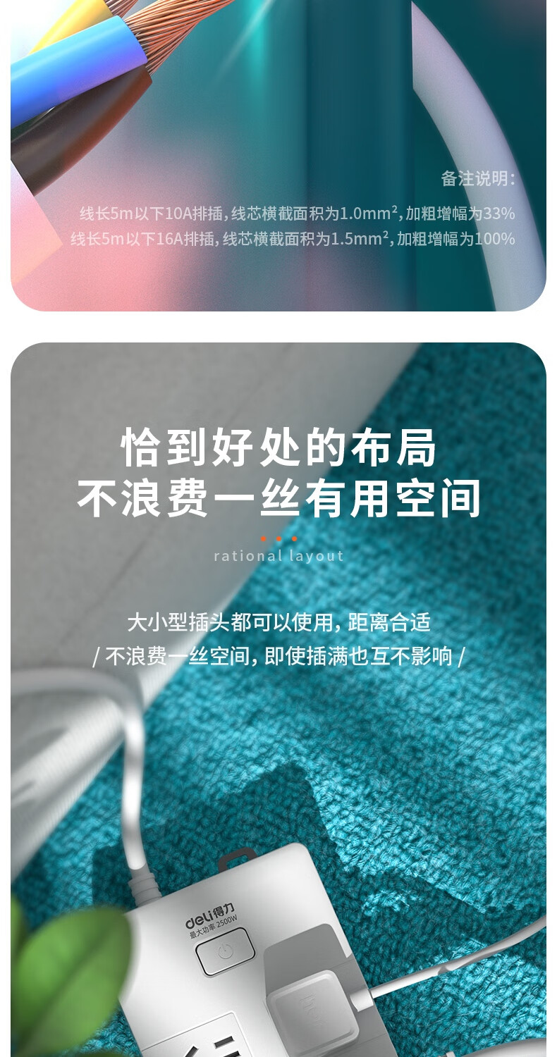 商品名稱:得力18168-03 多功能插排/插線板/拖線板/接線板/電插板/插座板 6位3米(個(gè))