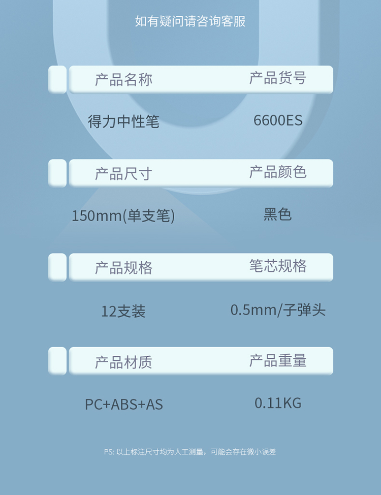 商品名稱:得力6600ES 中性筆 0.5mm經(jīng)典辦公子彈頭水筆簽字筆 12支/盒