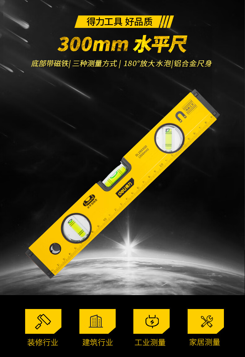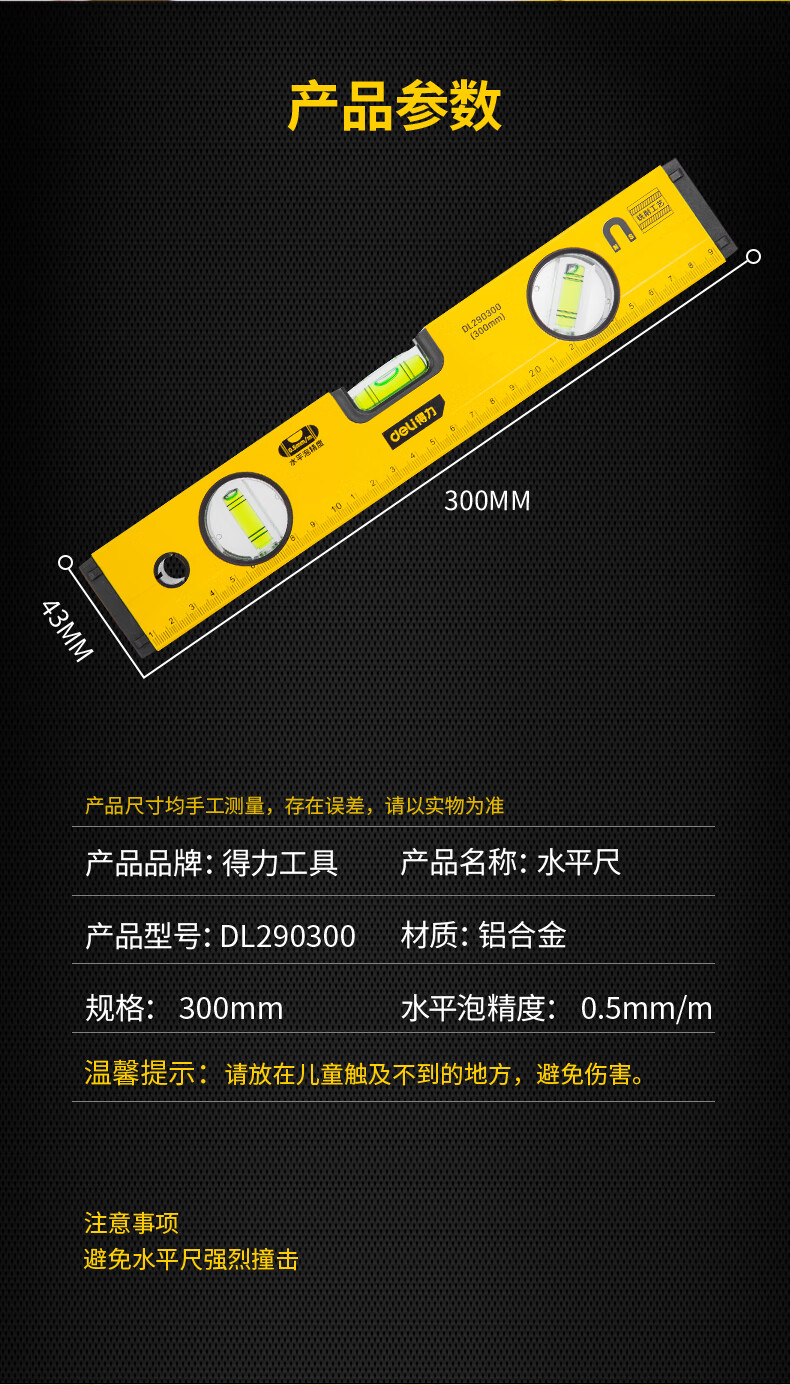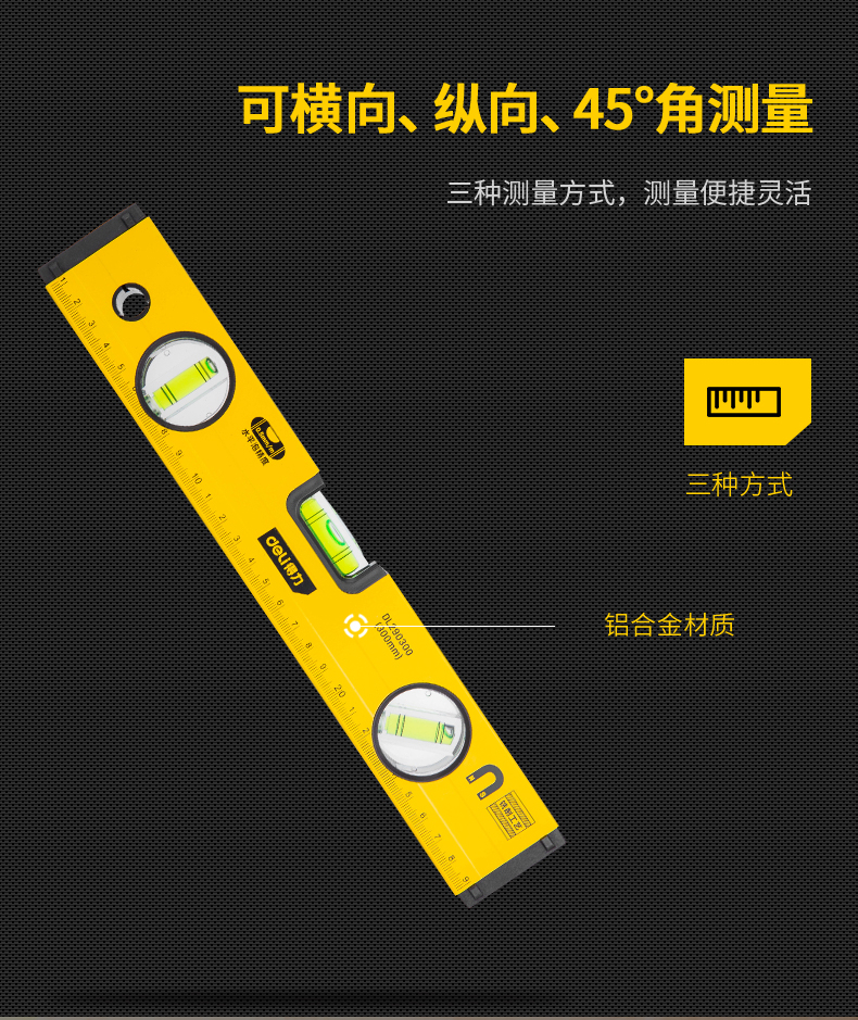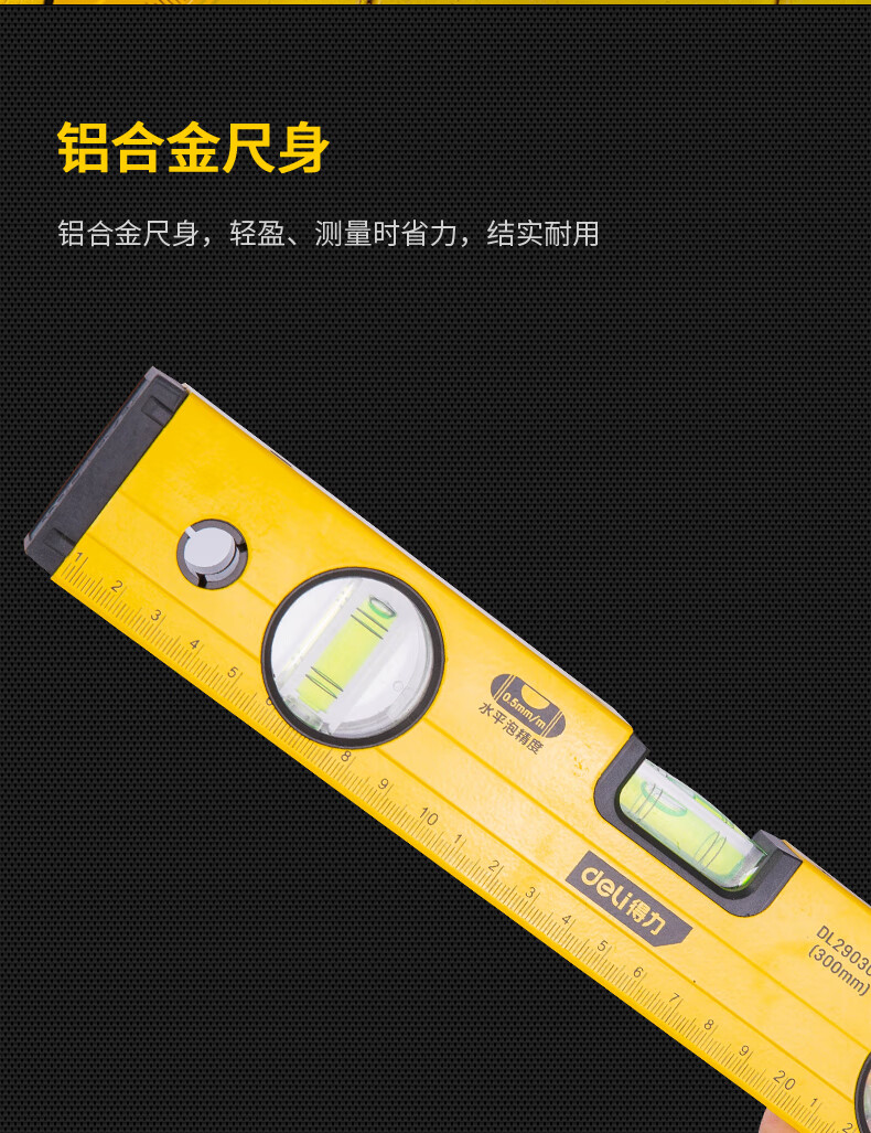 商品名稱:得力DL290300 強(qiáng)磁多角度水平尺 鋁合金水平測量尺水平儀300mm