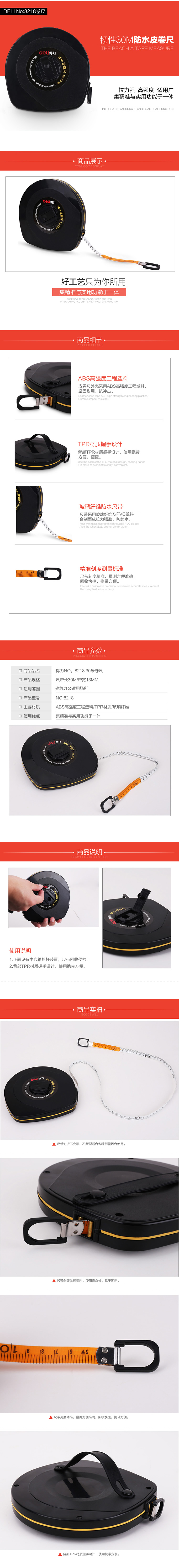 商品名稱:得力8218 皮卷尺 30米長皮尺防水盒裝修體育皮卷尺工程皮尺