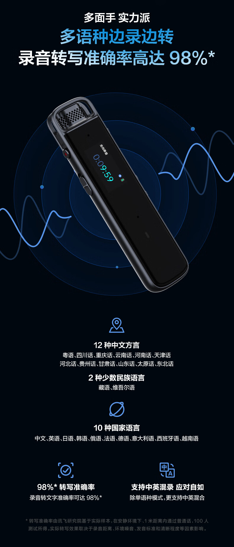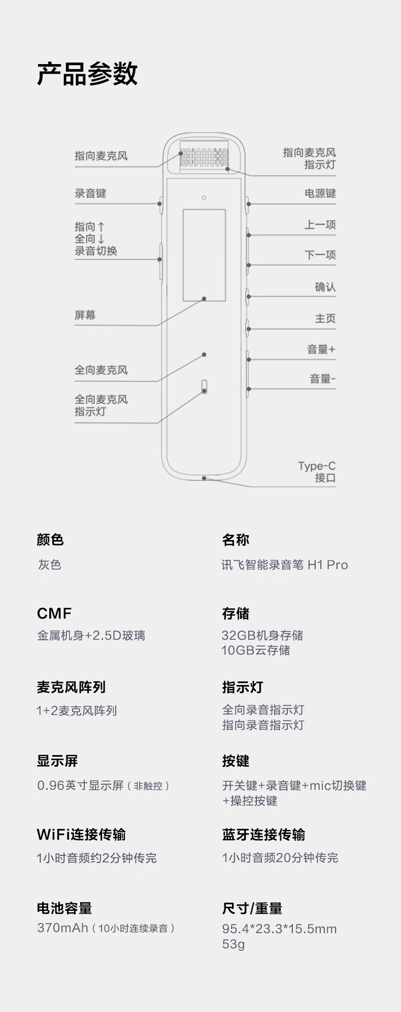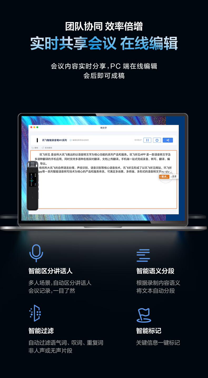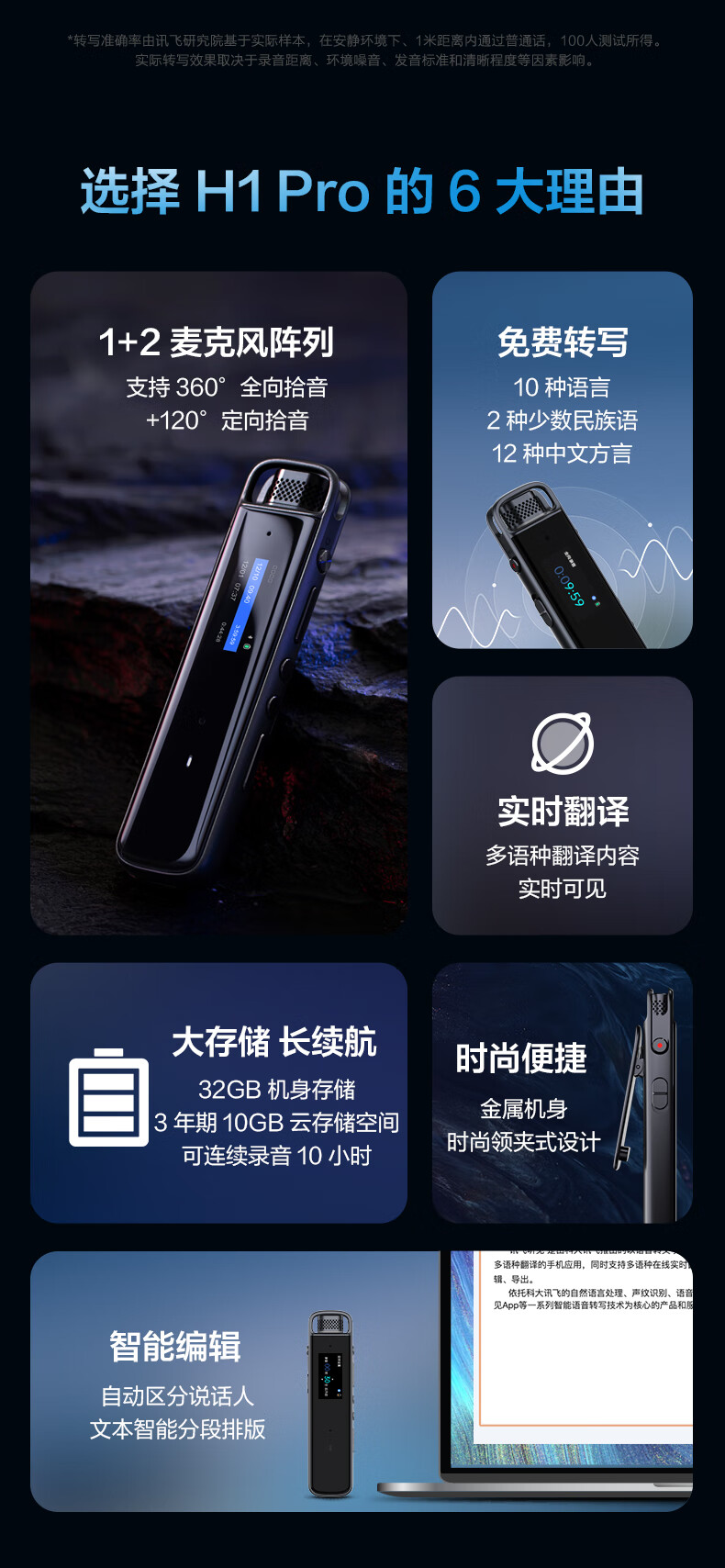 商品名稱:科大訊飛H1 Pro 智能錄音筆 32G 轉(zhuǎn)寫(xiě)助手 專業(yè)高清降噪 會(huì)議錄音轉(zhuǎn)文字 錄音筆 實(shí)時(shí)翻譯