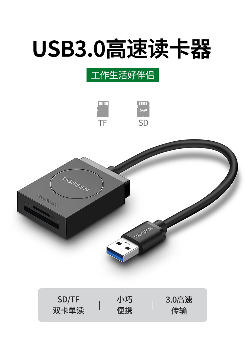 商品名稱:綠聯(lián)CR127 USB3.0高速讀卡器 SD/TF二合一多功能讀卡器 適用手機(jī)單反相機(jī)行車記錄儀監(jiān)控存儲內(nèi)存卡讀卡器