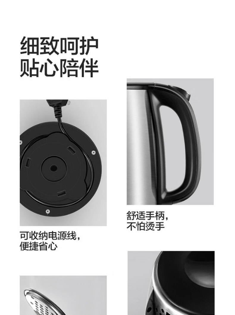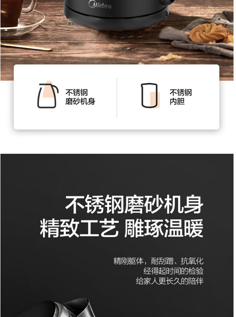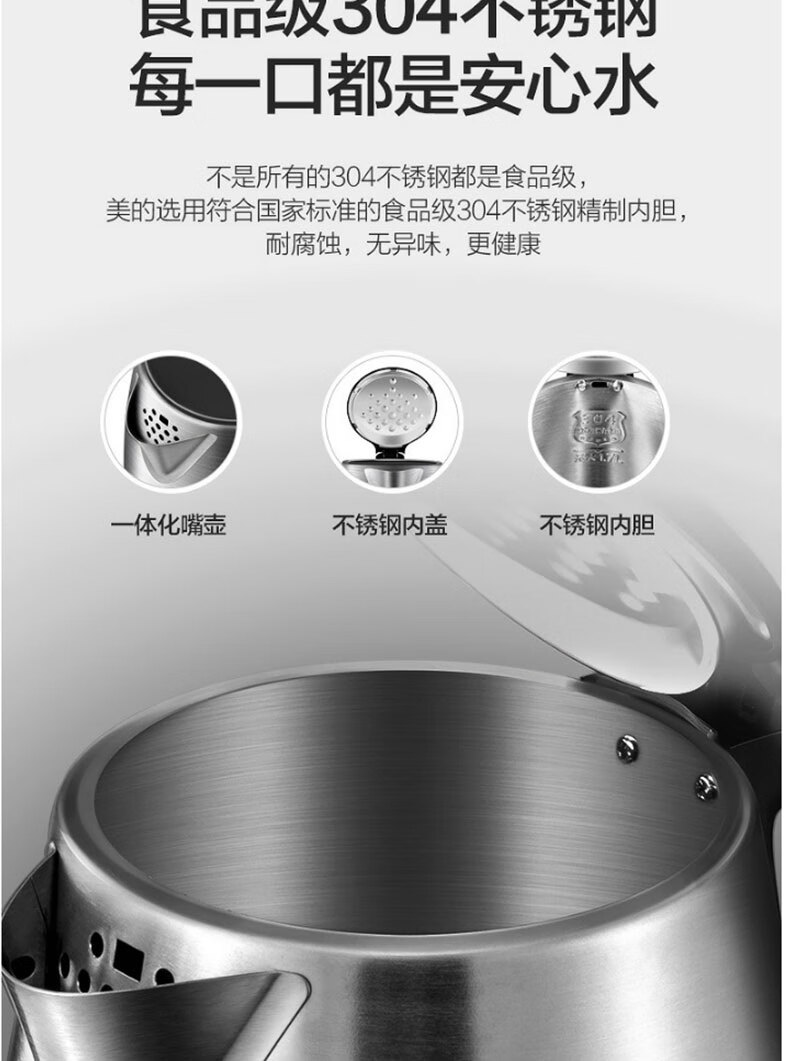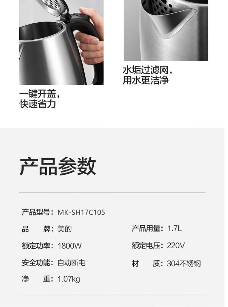 商品名稱:美的SH17C105 電熱水壺 燒水壺家用304不銹鋼大容量辦公室宿舍自動斷電開水壺 1.7L