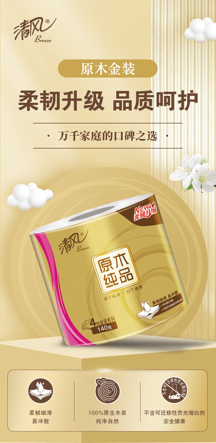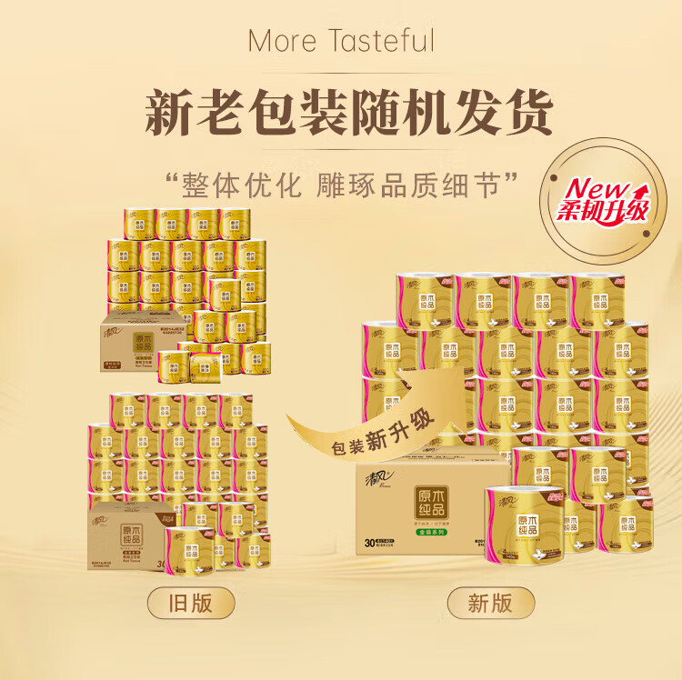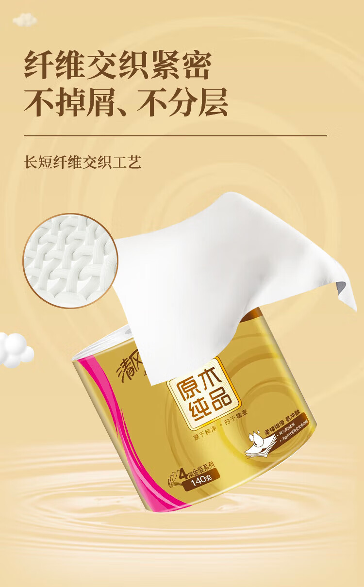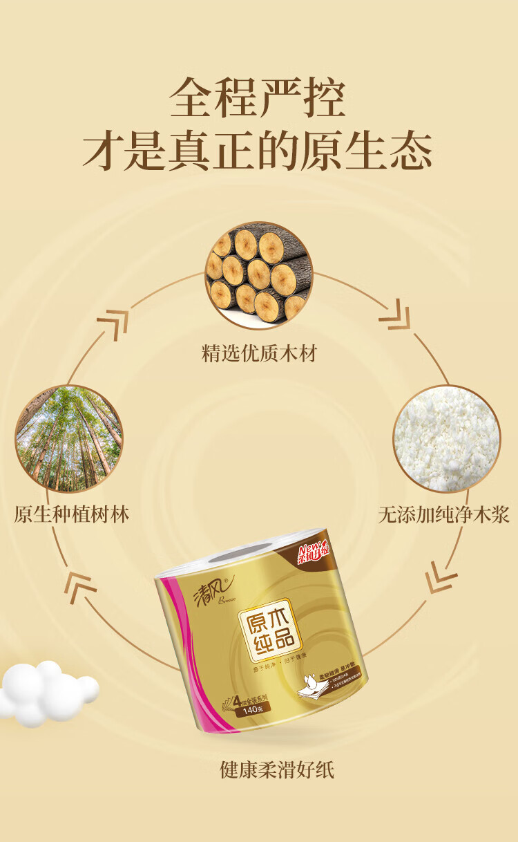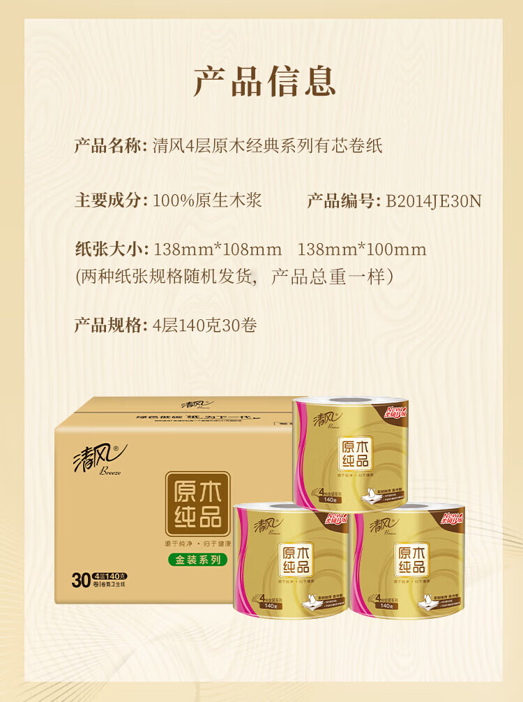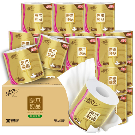 商品名稱:清風(fēng) 有芯卷紙 原木金裝 4層加厚140克*30卷 衛(wèi)生紙卷筒紙紙巾 整箱