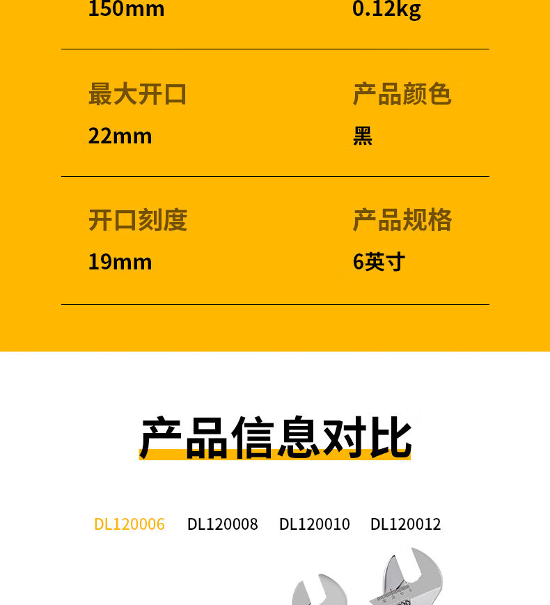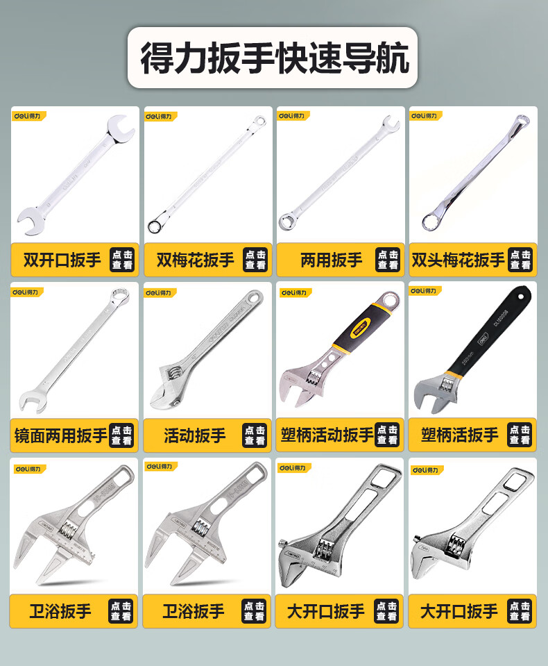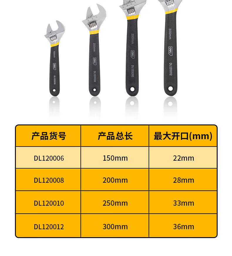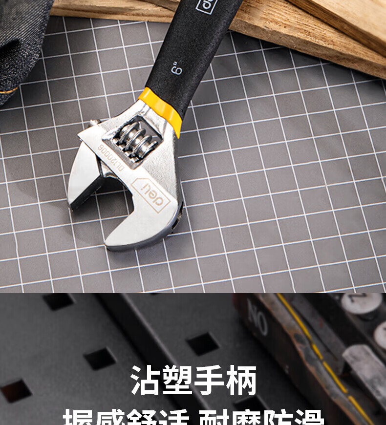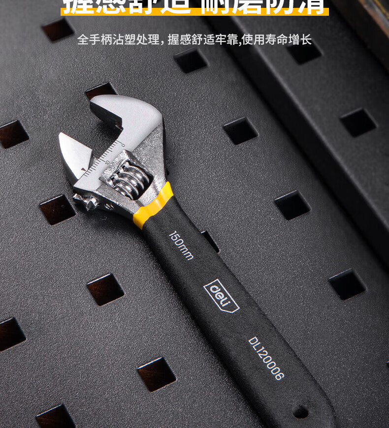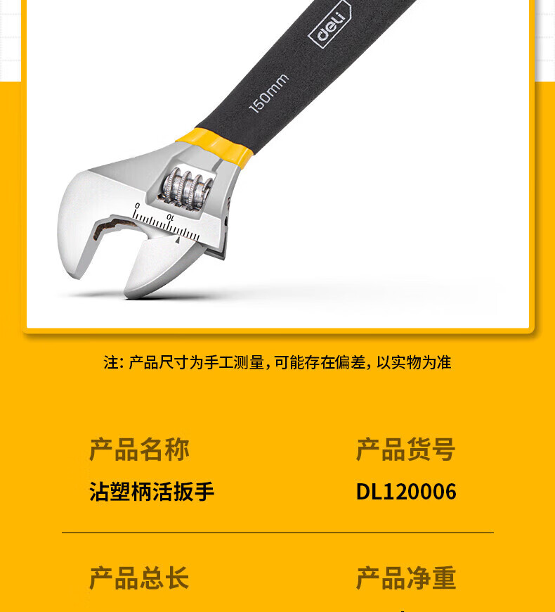 商品名稱:得力DL120006 沾塑柄活動(dòng)扳手 萬(wàn)能活口多功能扭力扳手6寸兩用活扳手