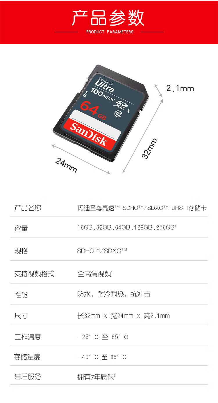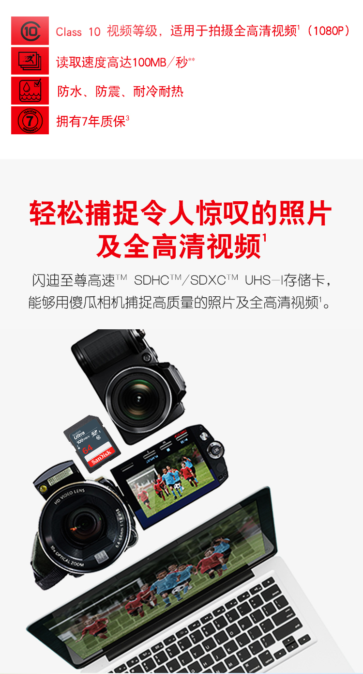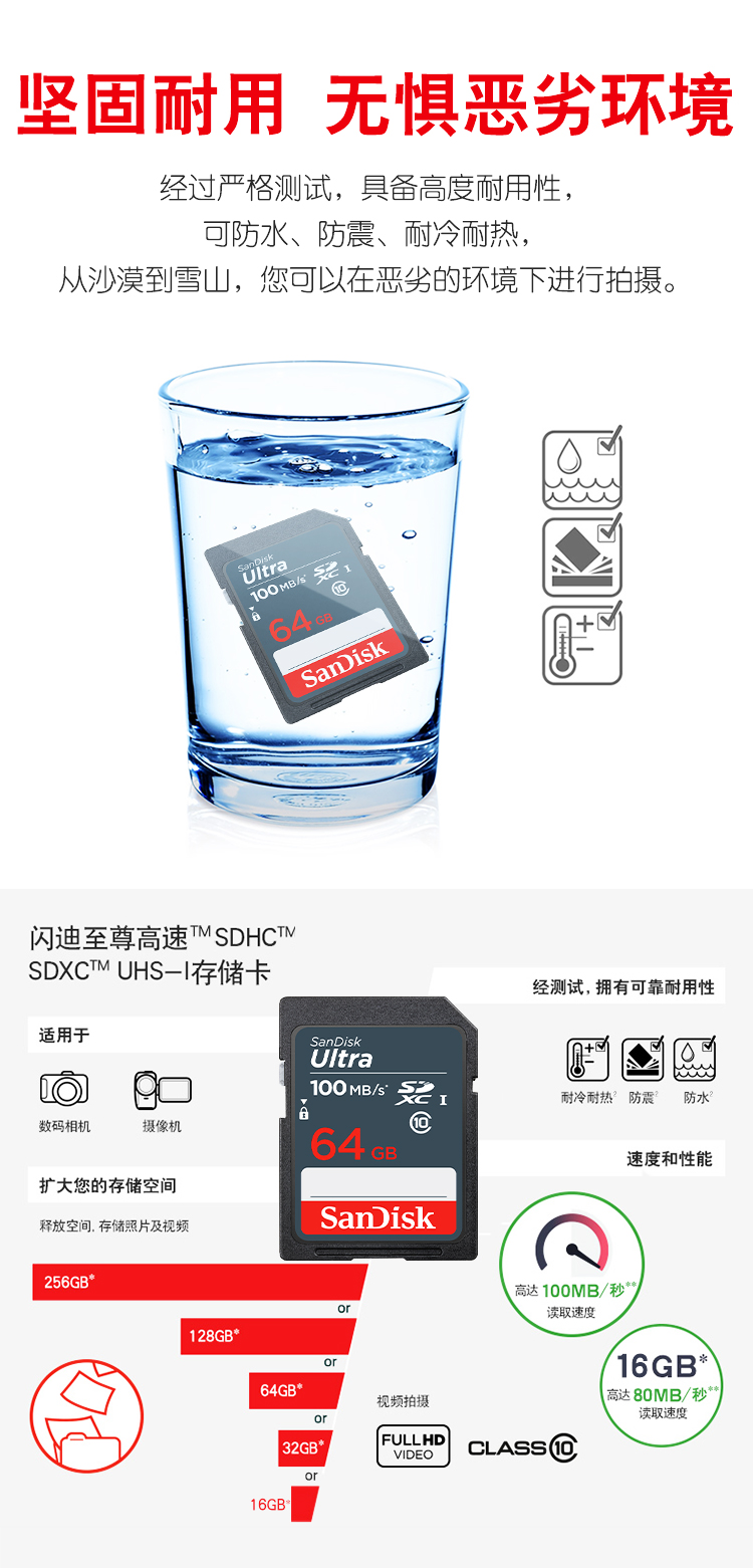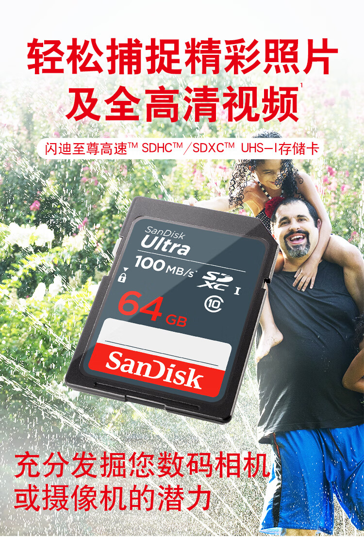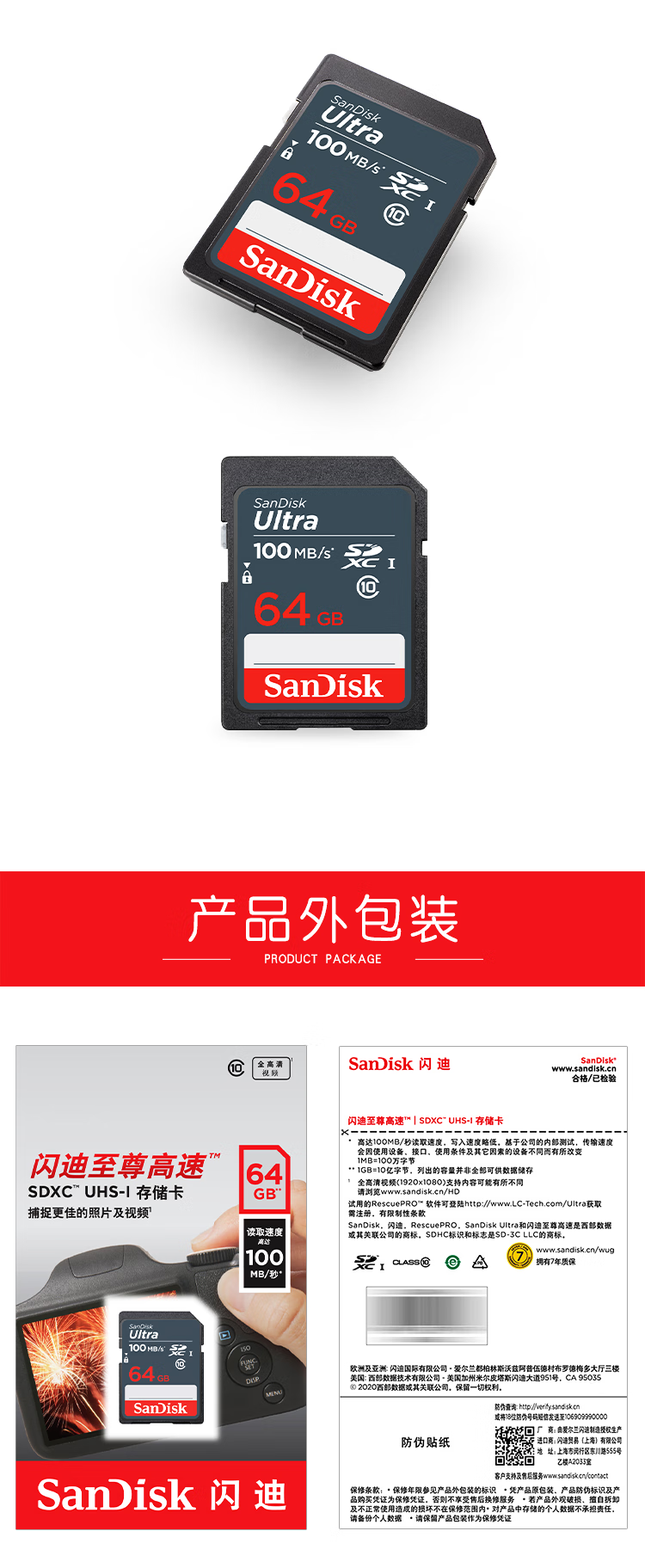 商品名稱(chēng):閃迪 64GB SD內(nèi)存卡 至尊高速版讀速100MB/s 數(shù)碼相機(jī) 攝像機(jī)存儲(chǔ)卡 支持高清視頻