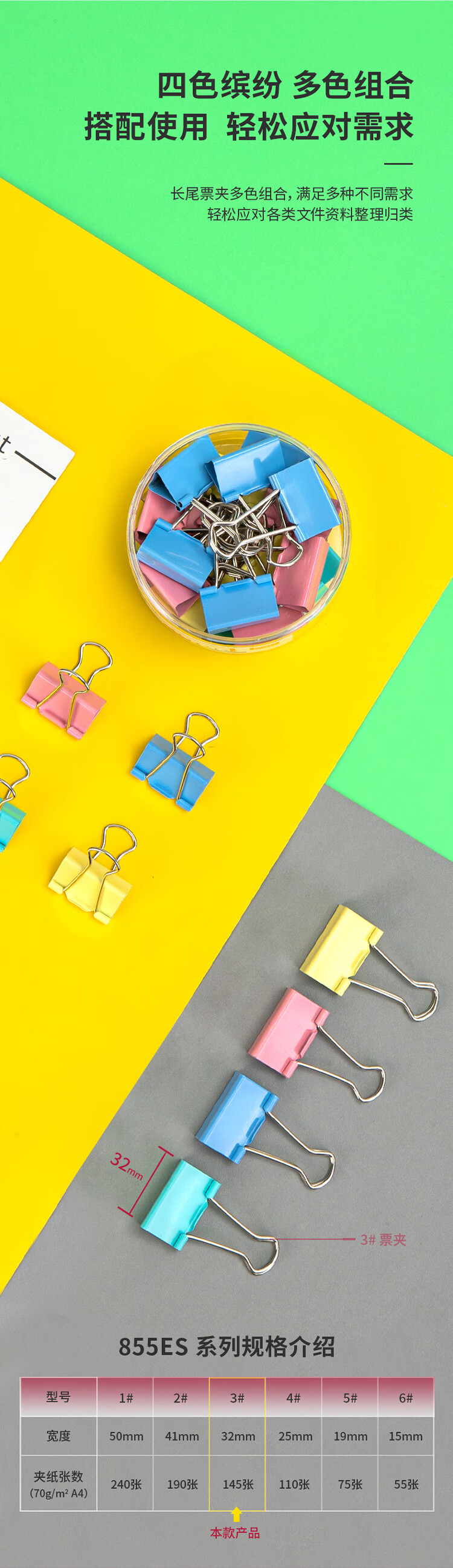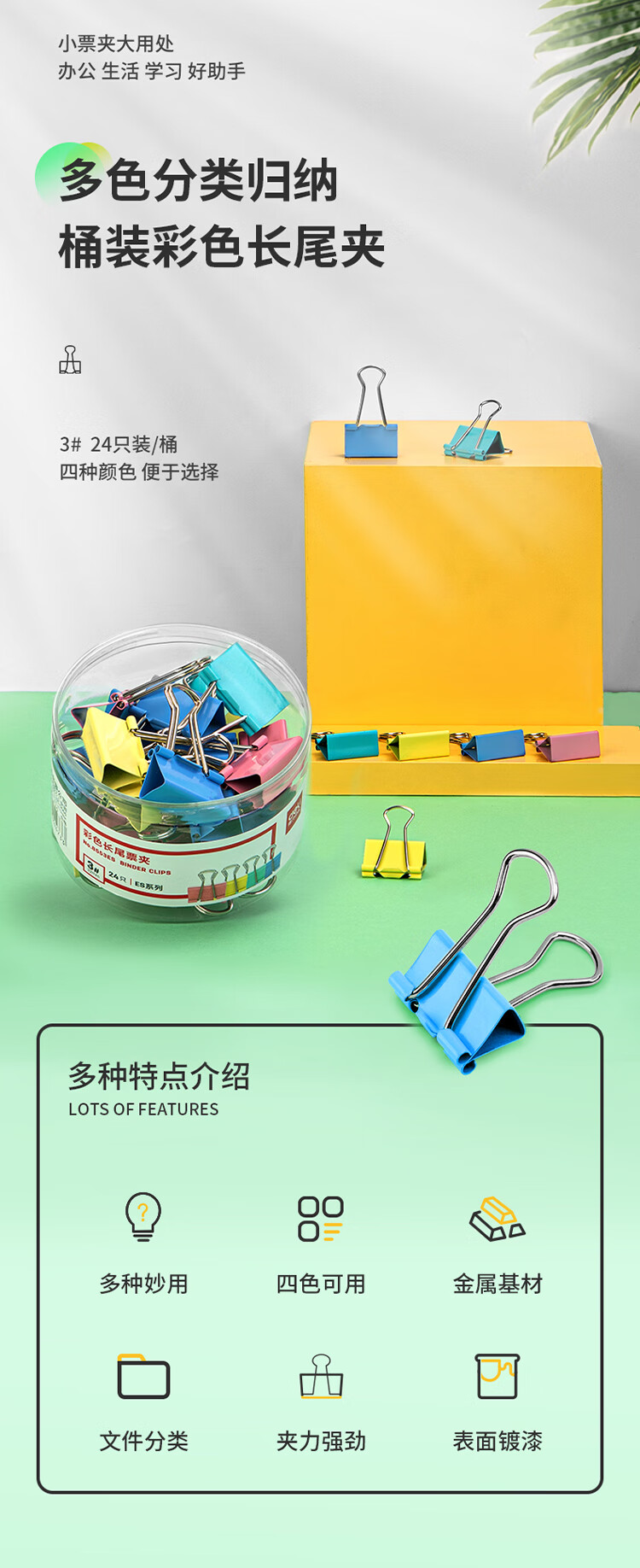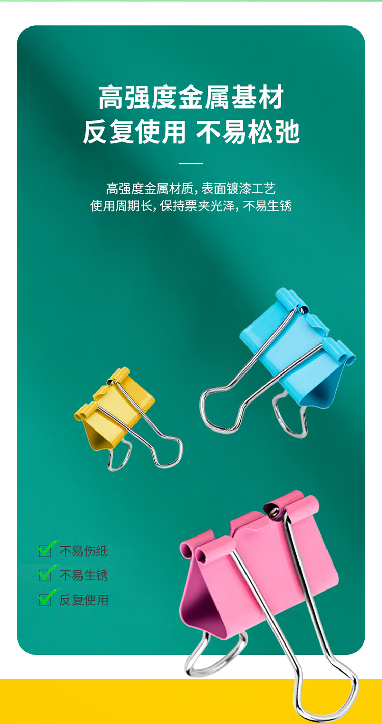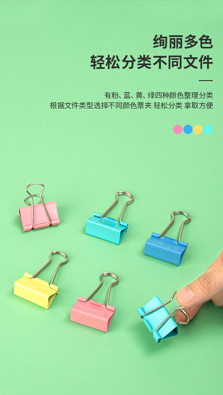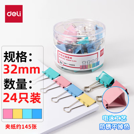 商品名稱: 得力8553ES 彩色長尾夾 3#32mm中號金屬票夾燕尾夾票據(jù)文件夾子 辦公用品 24只/筒