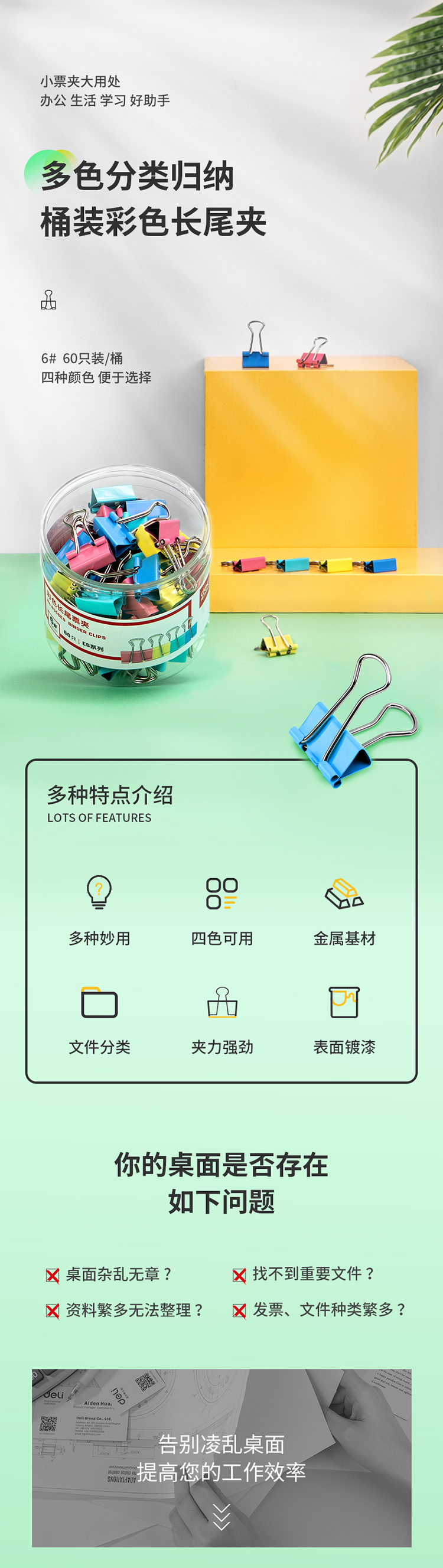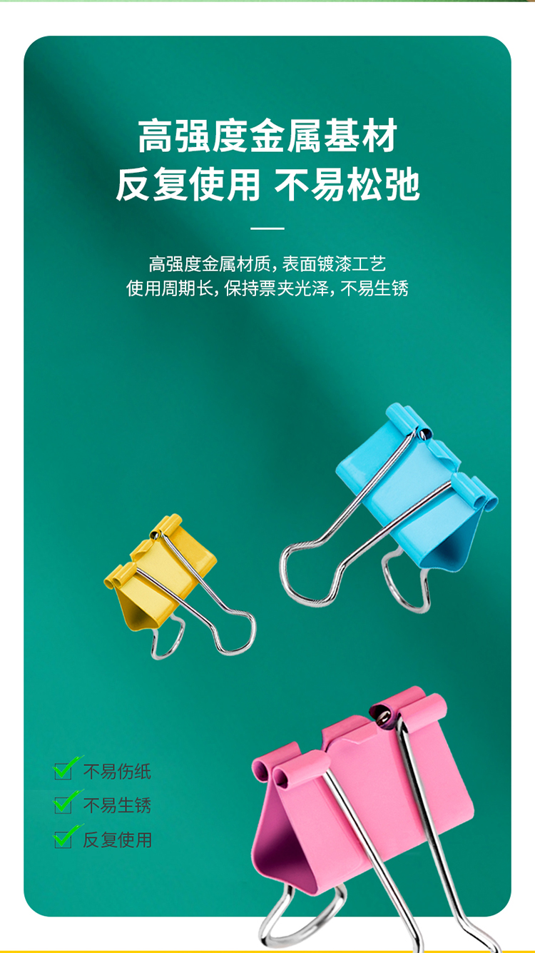 商品名稱:得力8556ES 彩色長尾夾 6#15mm小號金屬票夾燕尾夾票據(jù)文件夾子 辦公用品 60只/筒