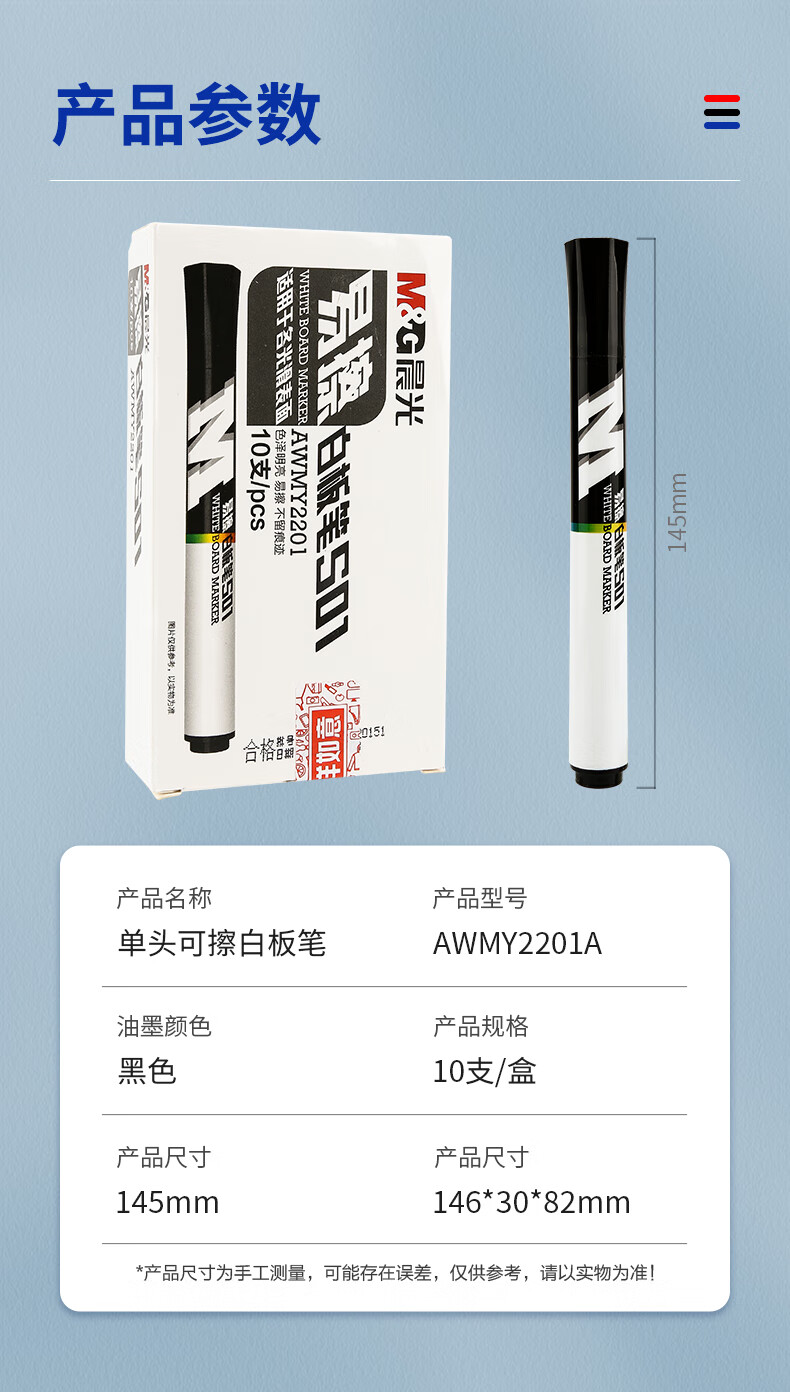 商品名稱:晨光AWMY2201 可擦白板筆 D10升級款單頭辦公會議筆 易擦白板筆 10支/盒
