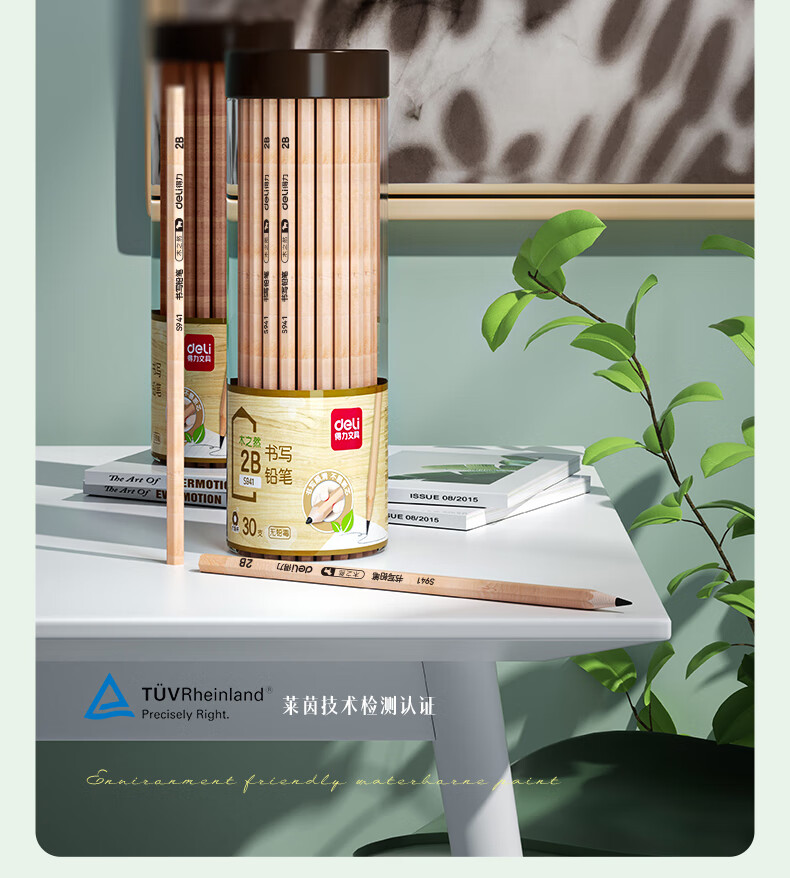 商品名稱:得力S941 鉛筆 木之然系列2B六角筆桿書寫繪畫素描鉛筆 30支/桶