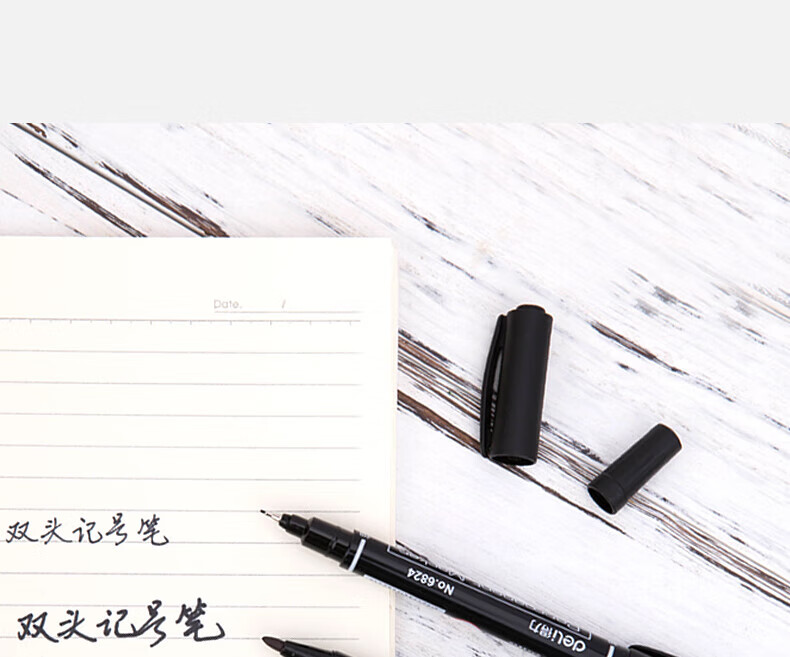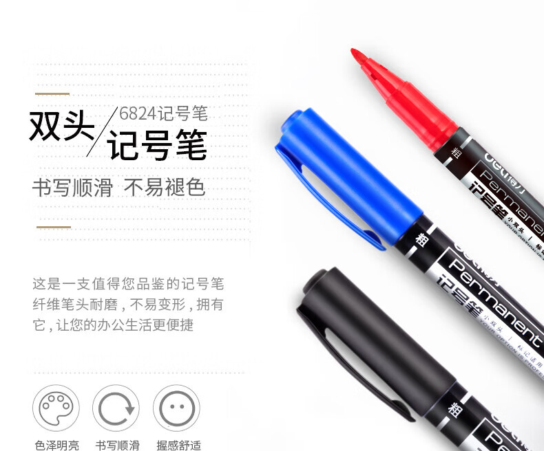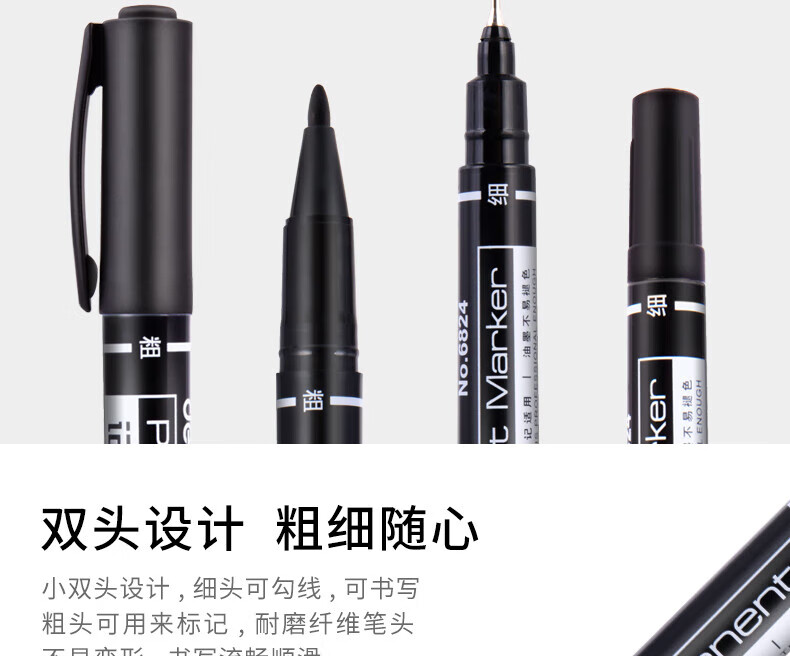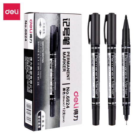 自營(yíng)得力6824 雙頭油性記號(hào)筆 辦公物流會(huì)議筆馬克筆 美術(shù)勾線筆 黑色 12支/盒