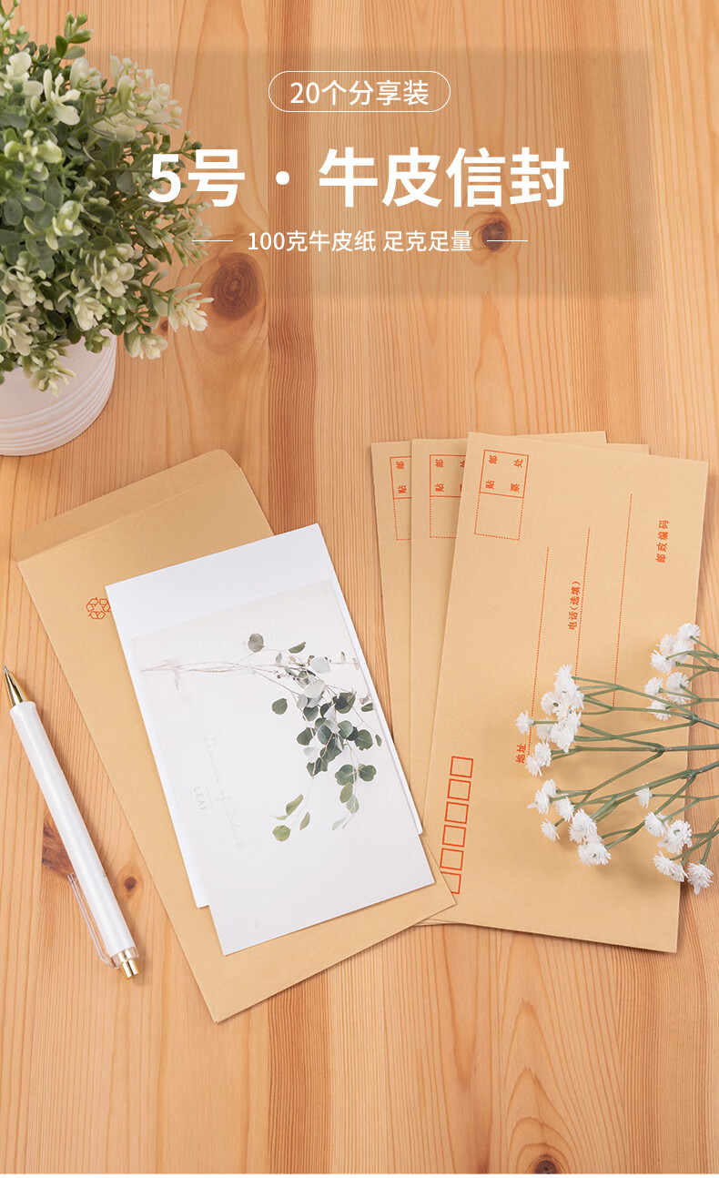 商品名稱:得力3423 牛皮紙信封 5號郵局標準信封220*110mm 20張/包