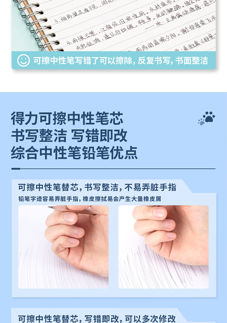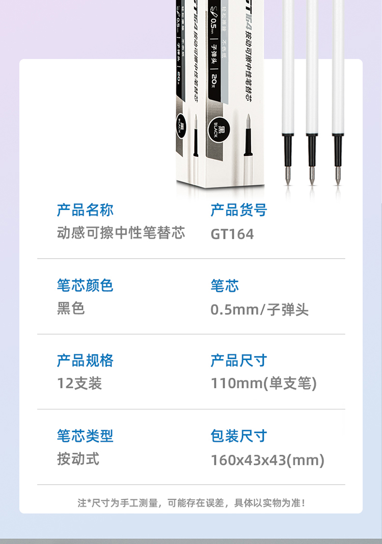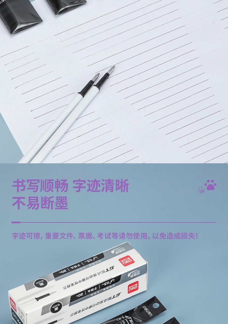 商品名稱:得力GT164 可擦按動(dòng)中性筆芯 0.5mm子彈頭簽字筆水筆替芯 黑色 20支/盒