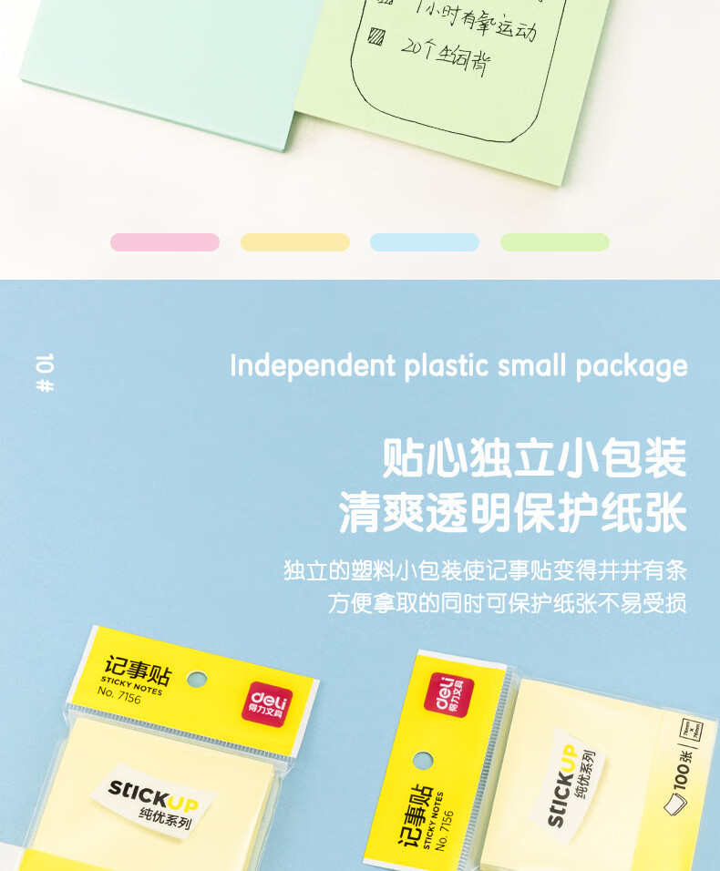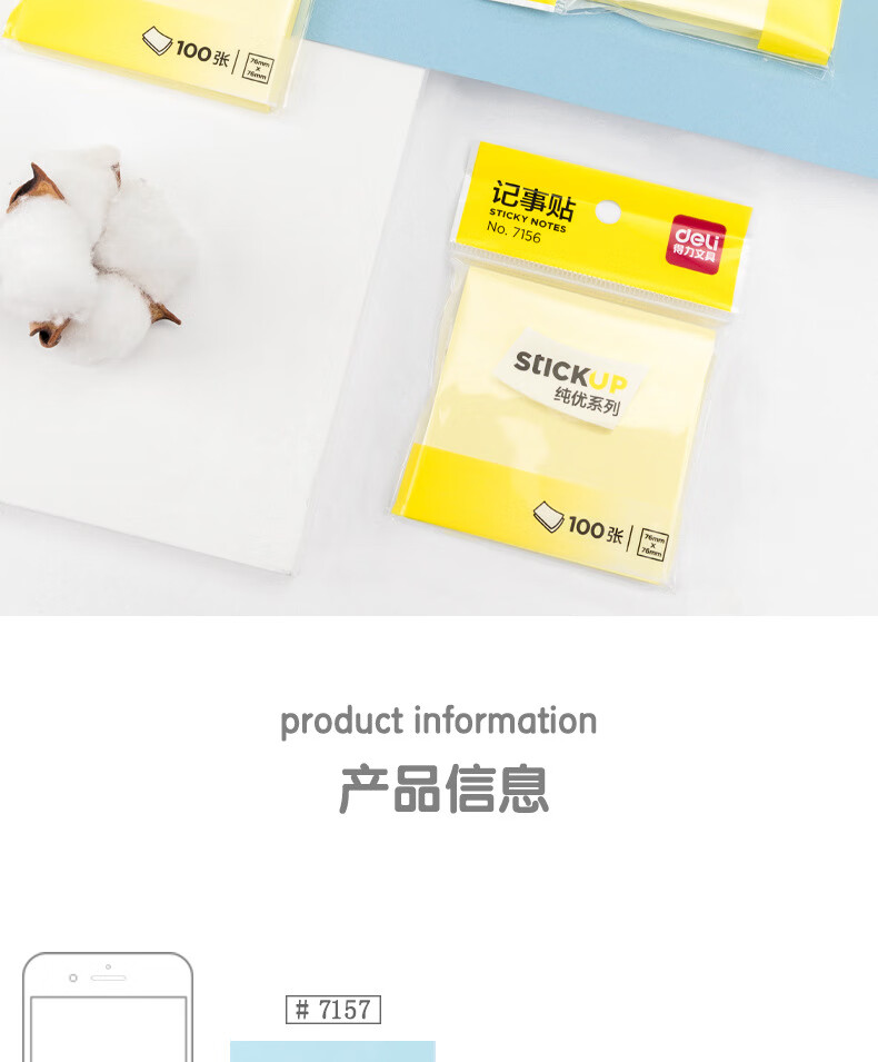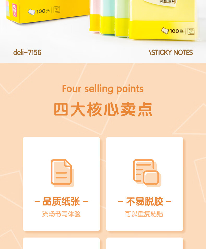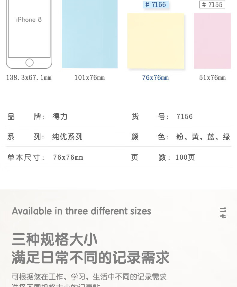 商品名稱:得力7156 便利貼 76*76mm備忘便簽紙易撕好貼粘貼牢固記事貼(混)100張/本