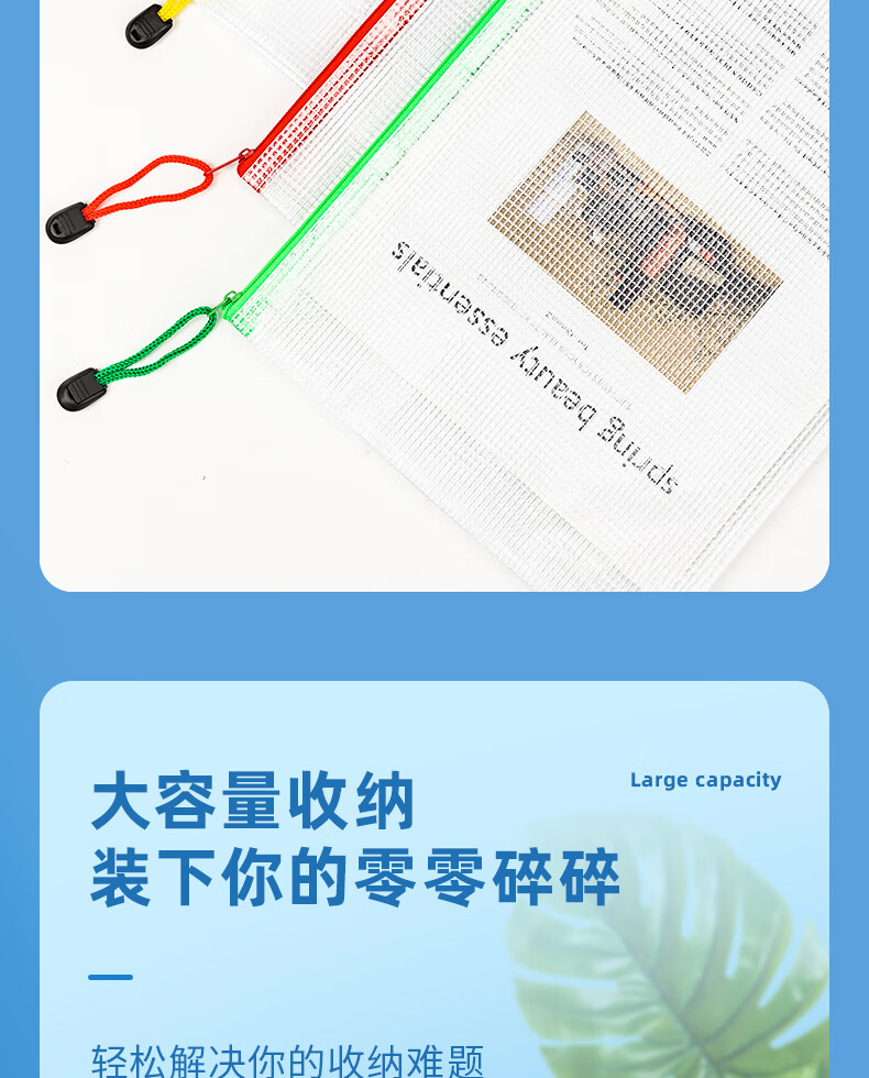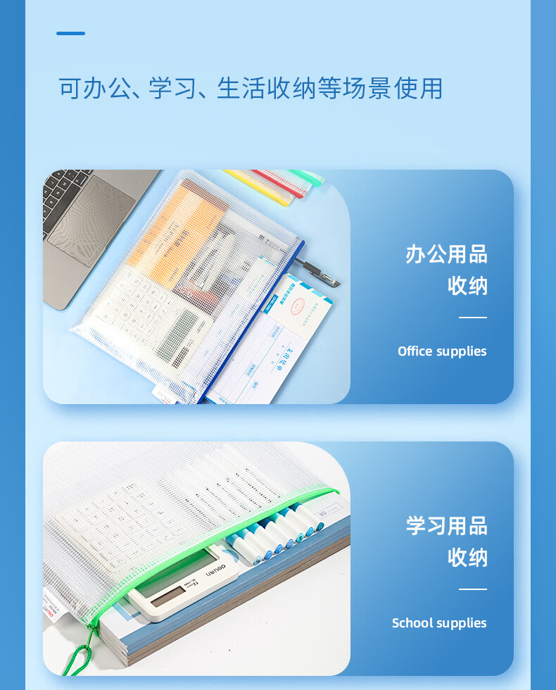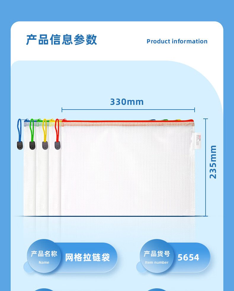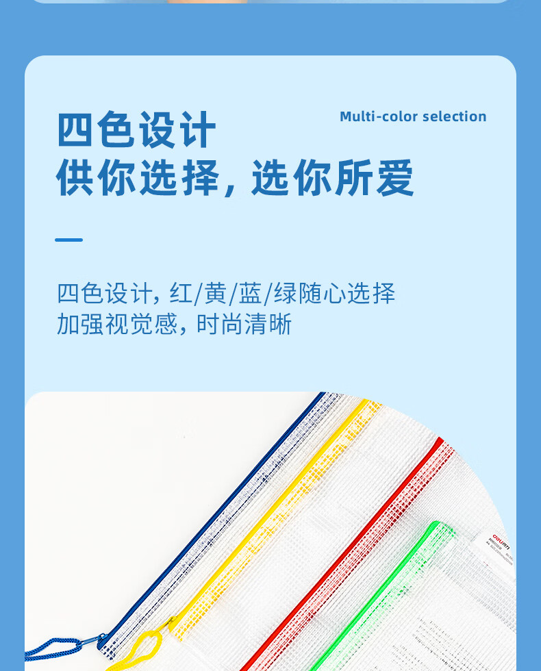 商品名稱(chēng):得力5654 網(wǎng)格拉鏈袋 A4收納袋透明文件袋資料袋科目袋學(xué)科袋 顏色隨機(jī) 單個(gè)裝