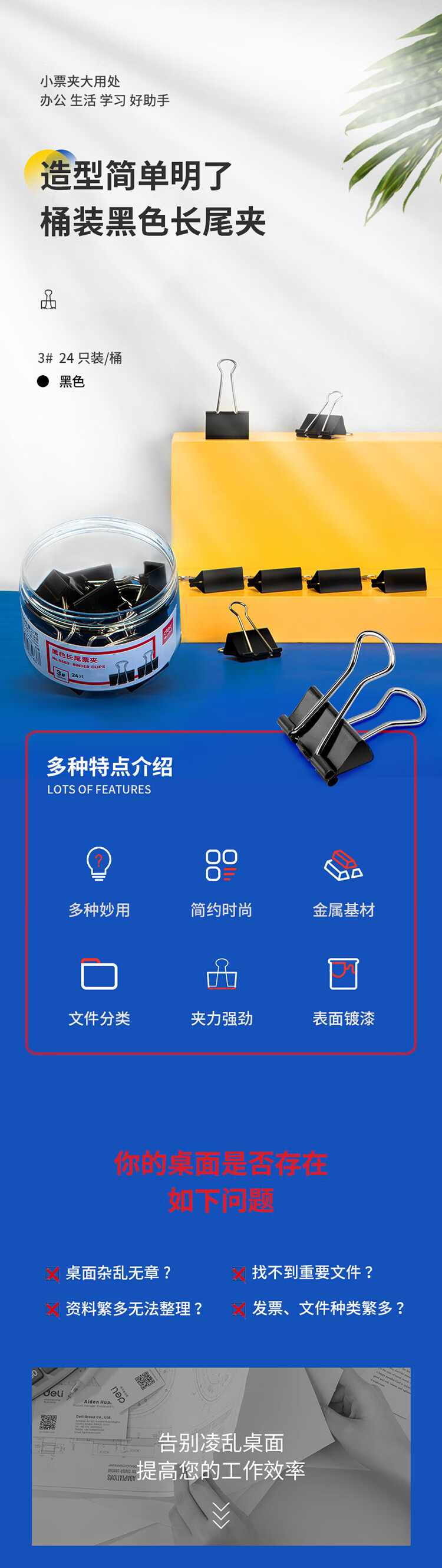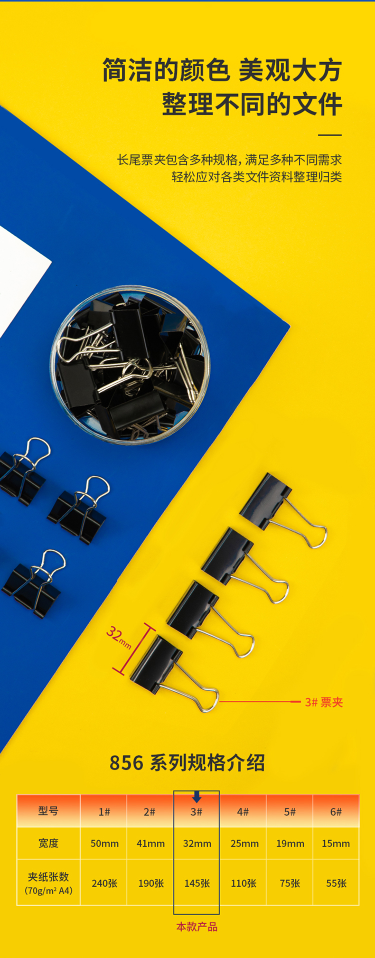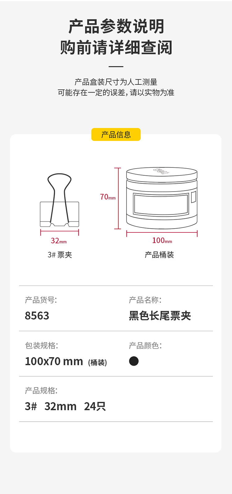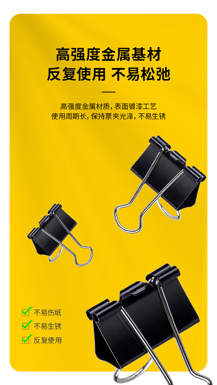 商品名稱:得力8563 黑色長尾夾 32mm中號金屬燕尾夾票據(jù)文件夾子 24只/筒