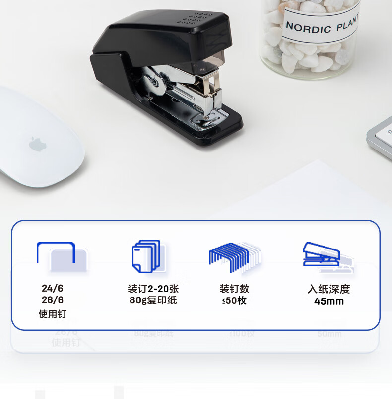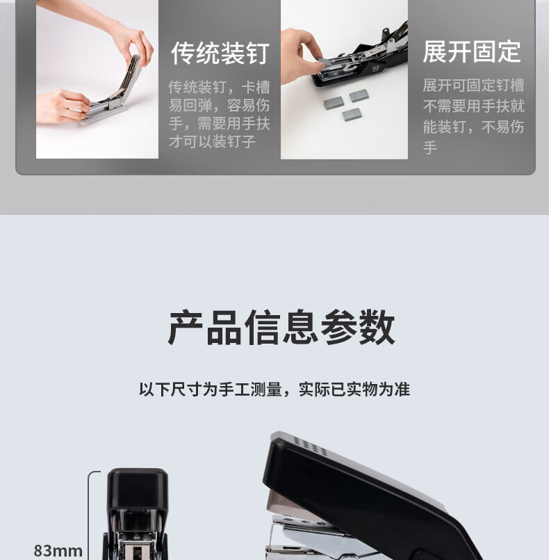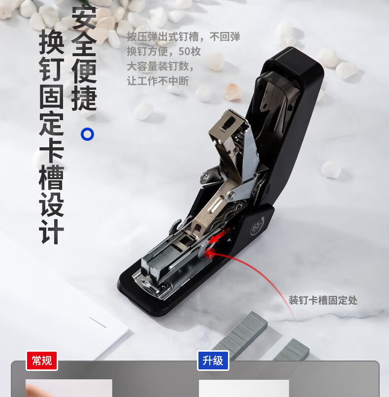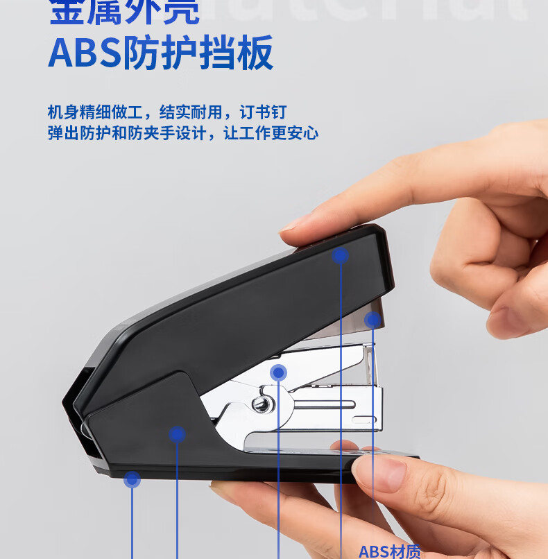 商品名稱:得力0466 省力訂書機 適配12#訂書釘 黑色 單位:個
