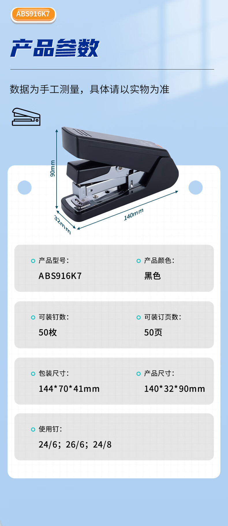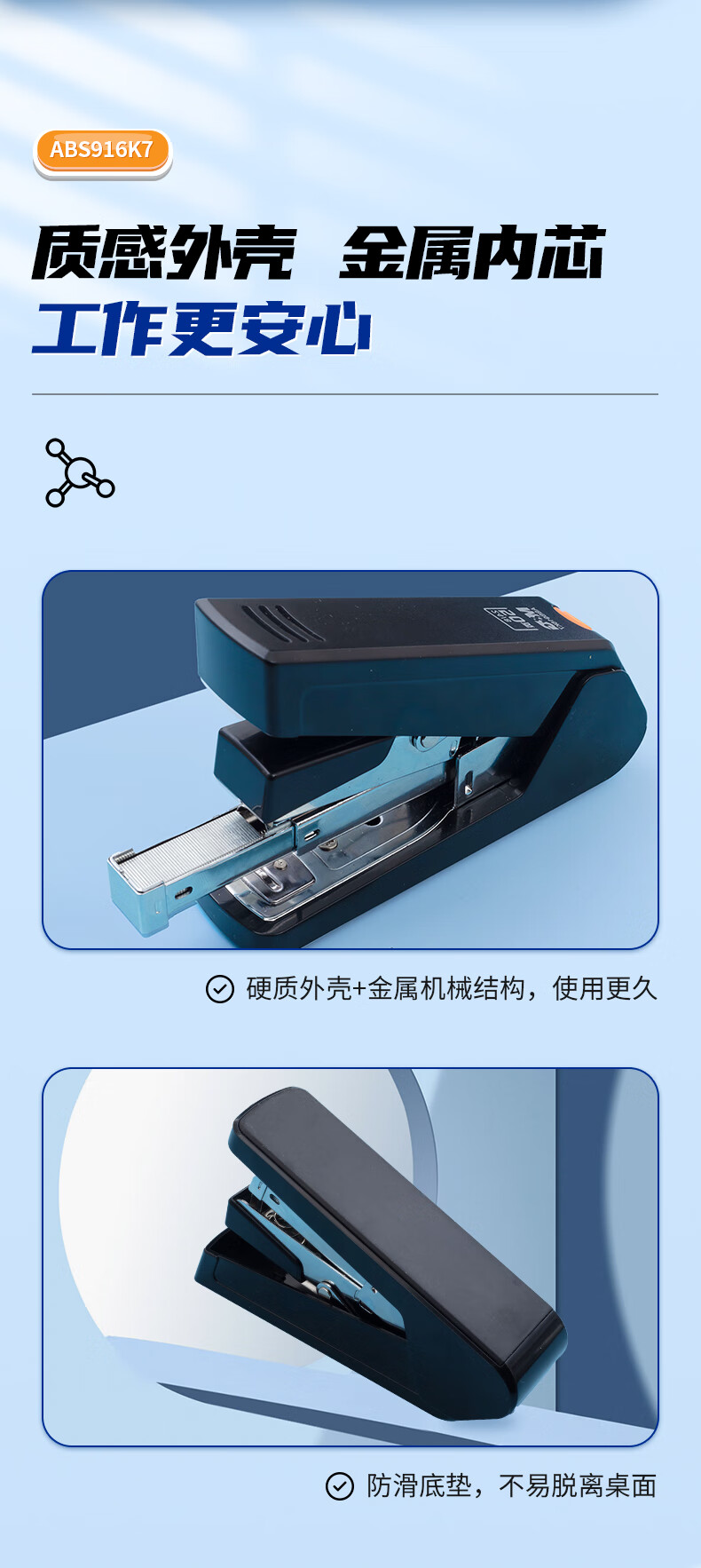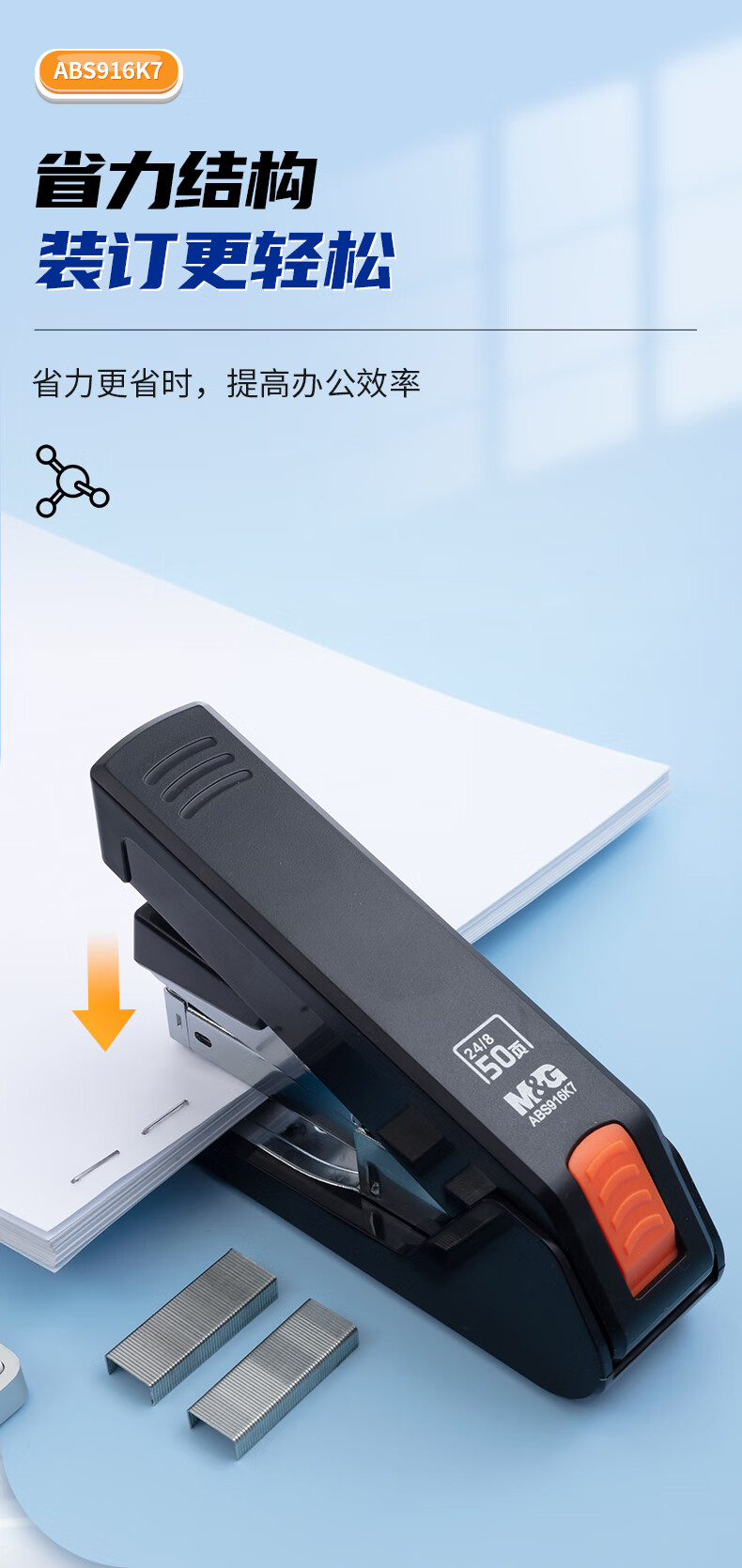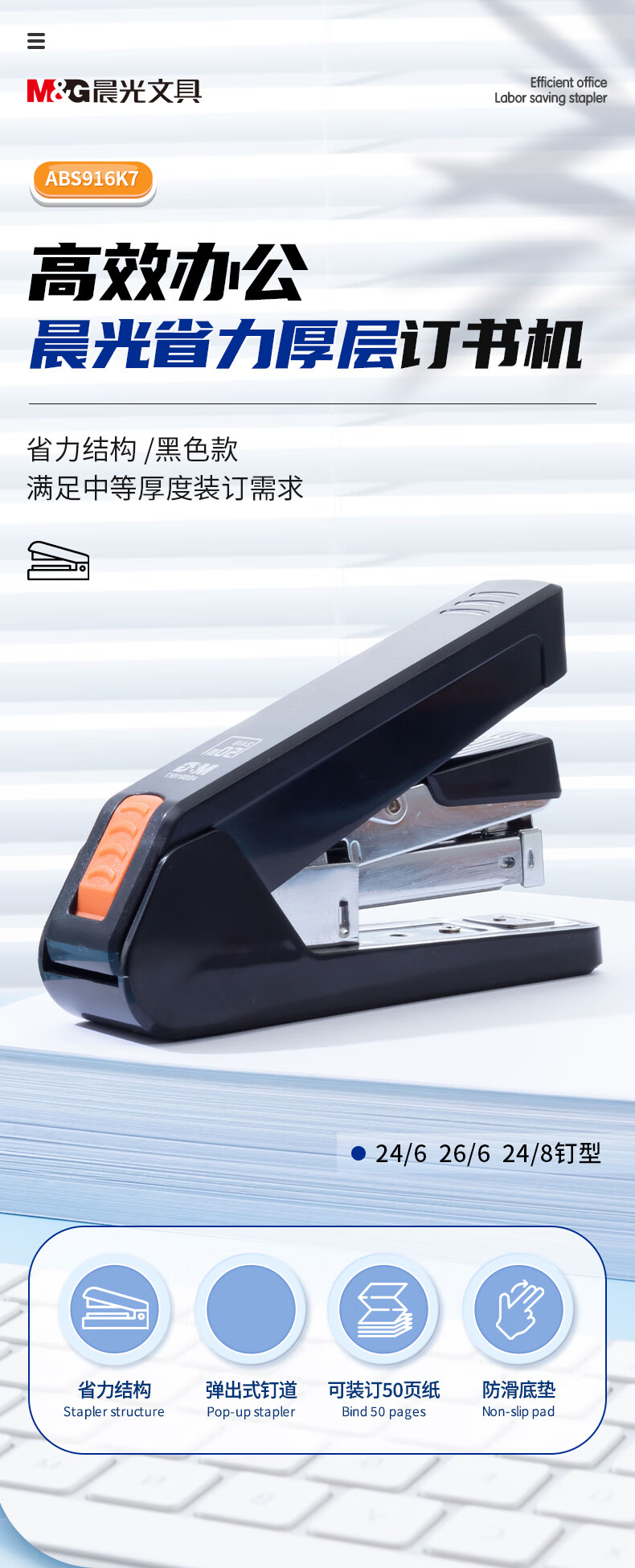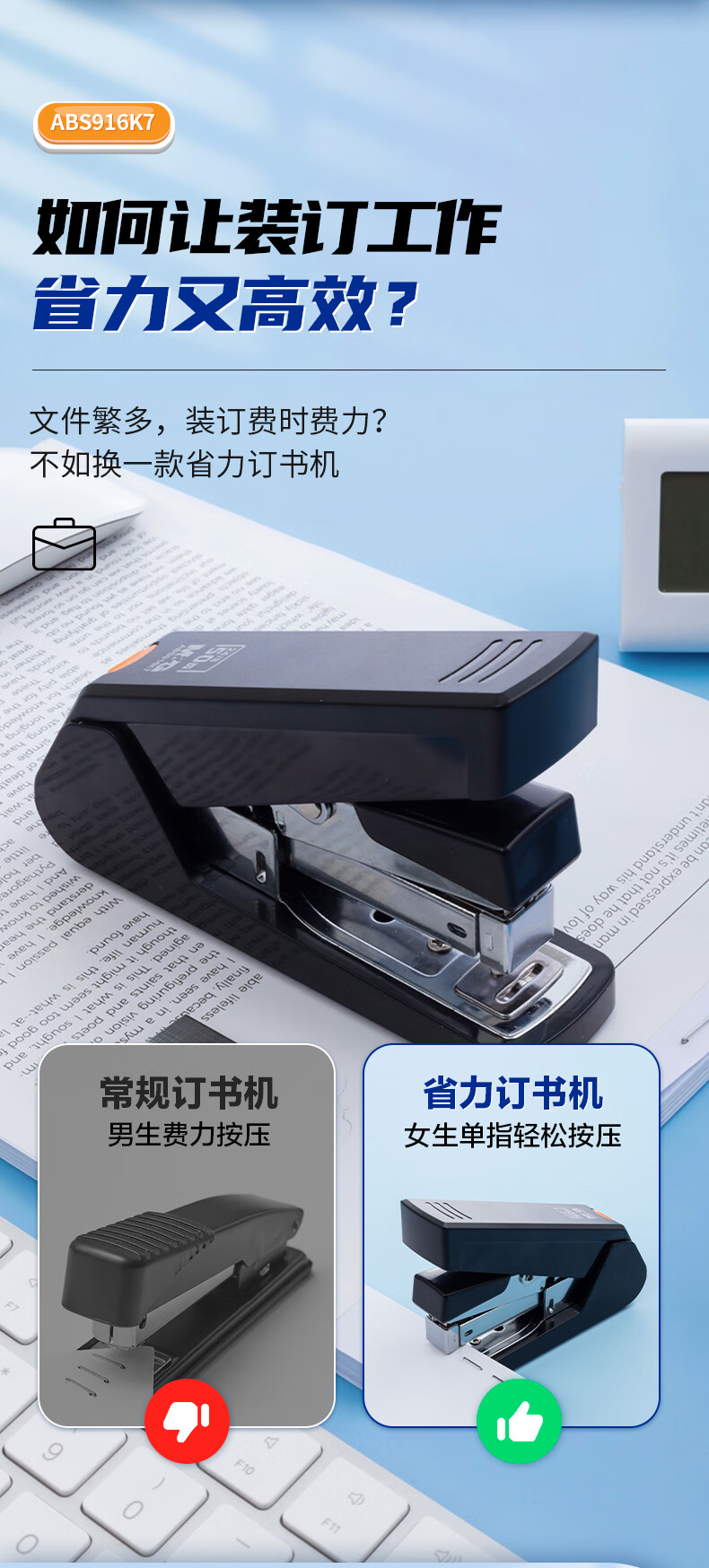 商品名稱:晨光ABS916K7 12#厚層訂書機 商務(wù)型省力訂書器 單個裝
