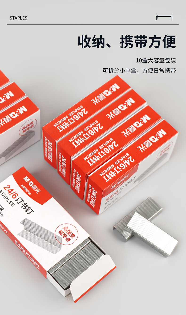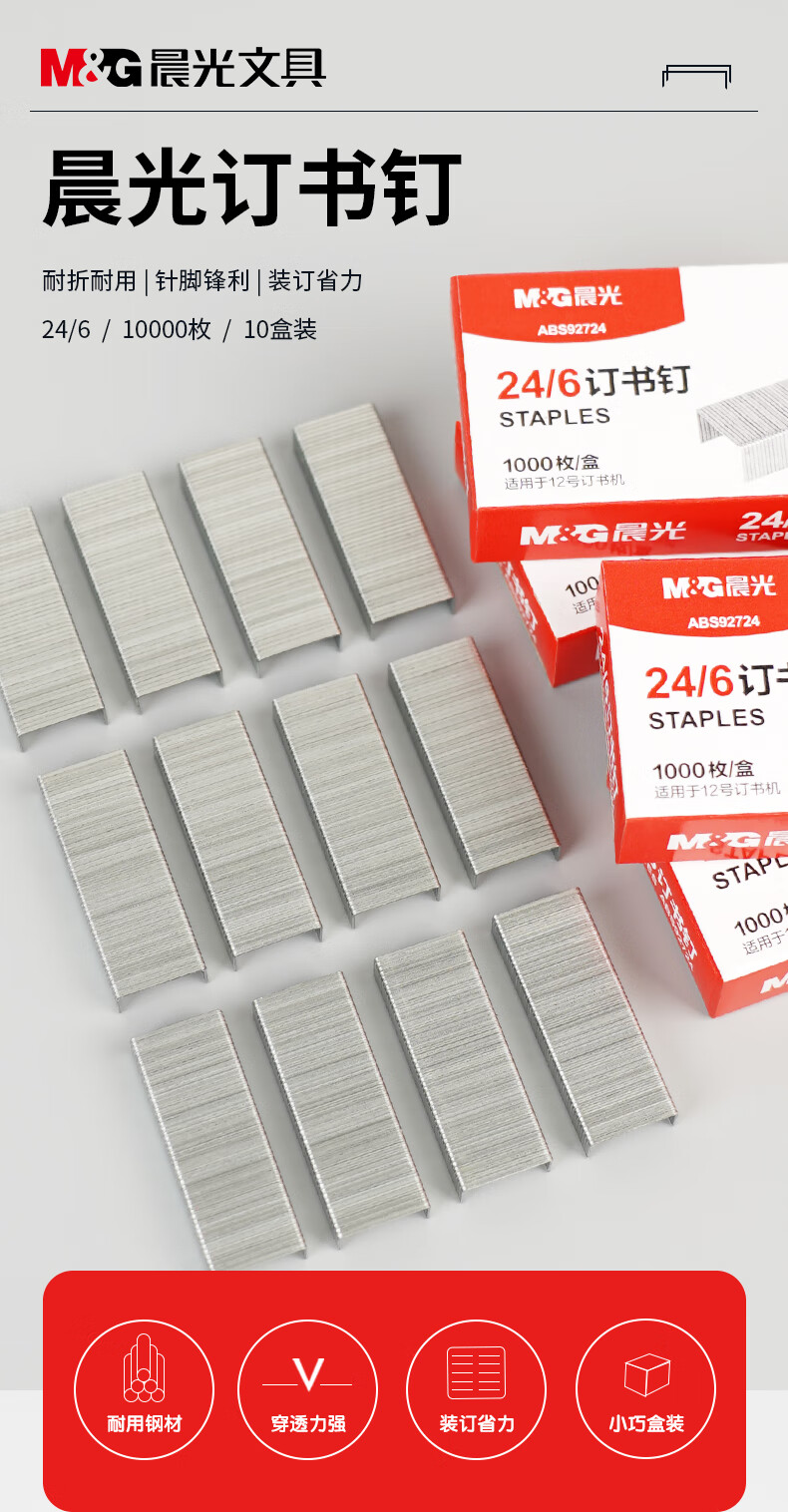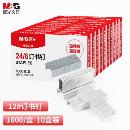 商品名稱:晨光ABS92724 訂書釘 12#高強度易穿透訂書針 辦公用品 1000枚/盒 10盒裝
