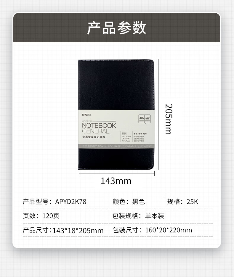 商品名稱:晨光APYD2K78 筆記本 A5/25K會(huì)議記錄皮面本120張黑色記事本 單本裝