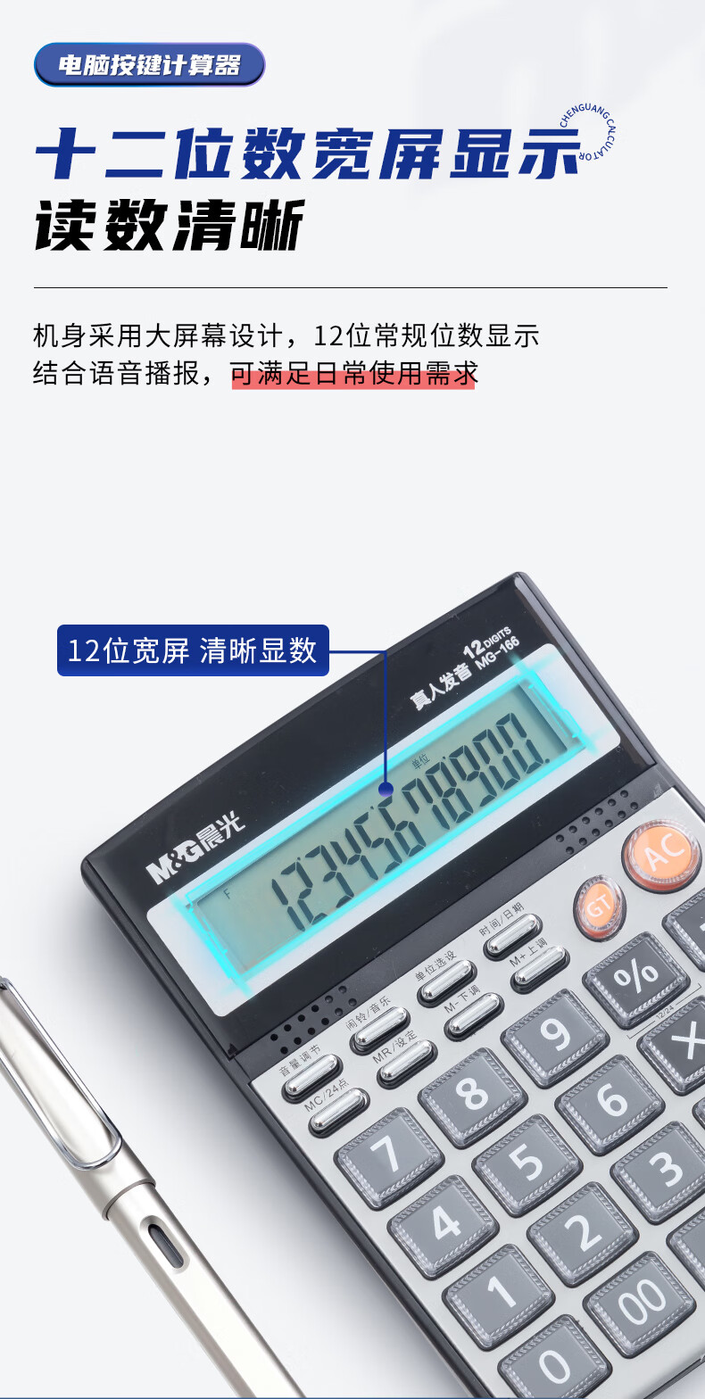 商品名稱:晨光ADG98715 大屏金屬面板真人語(yǔ)音計(jì)算器 12位顯示大屏幕桌面計(jì)算機(jī) 單個(gè)裝