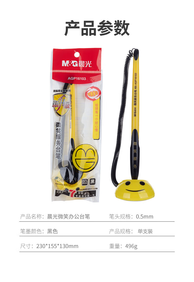 商品名稱:晨光AGP16103A 黑色臺筆 0.5mm可黏貼微笑中性筆 子彈頭簽字筆 單支裝