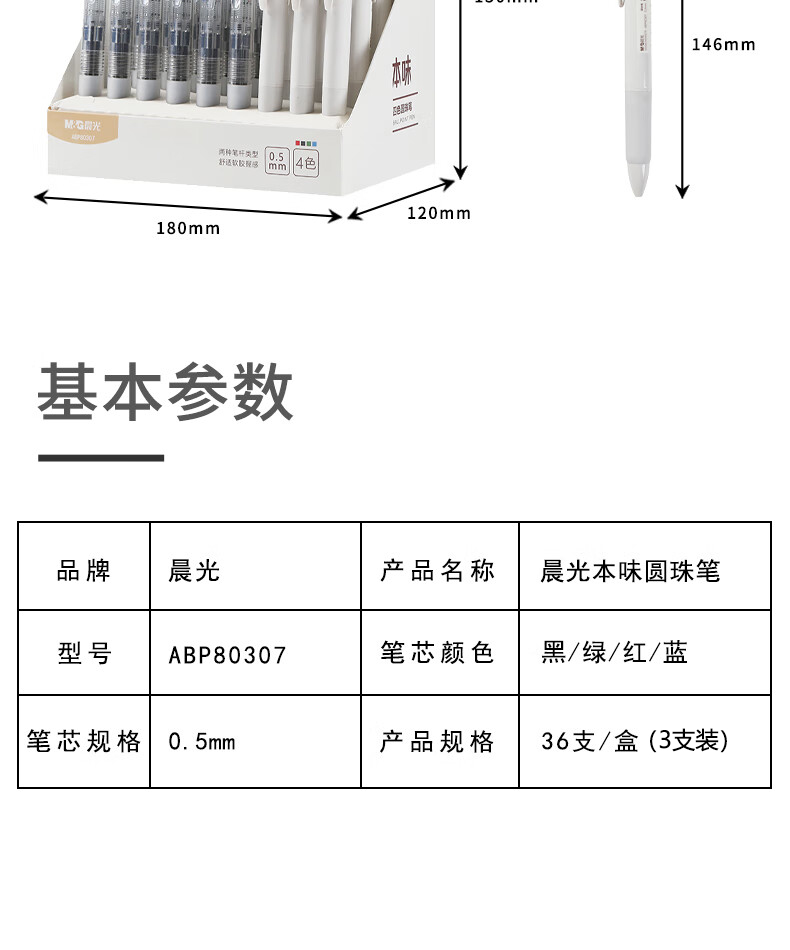 商品名稱:晨光ABP80307 按動圓珠筆 本味系列四色0.5mm子彈頭原子筆 四合一順滑油筆 3支裝