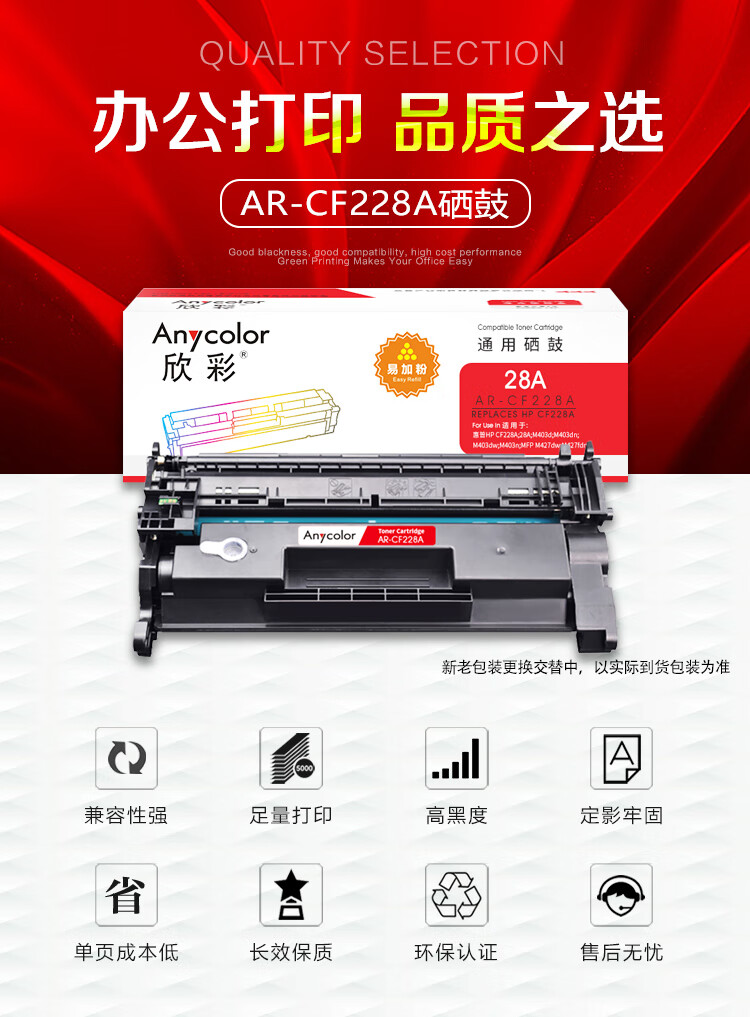 自營(yíng)欣彩AR-CF228A硒鼓易加粉 適用惠普CF228A 28A M403d M403dn M403dw M403n MFP M427dw 單位:支