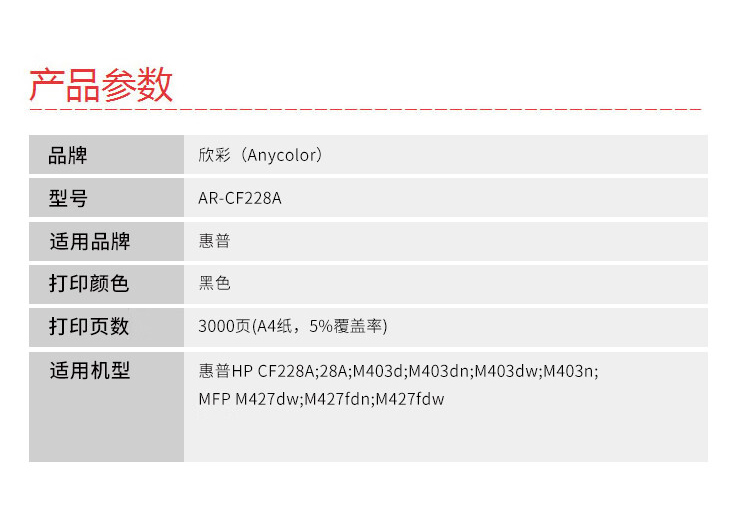 商品名稱:欣彩AR-CF228A硒鼓易加粉 適用惠普CF228A 28A M403d M403dn M403dw M403n MFP M427dw 單位:支