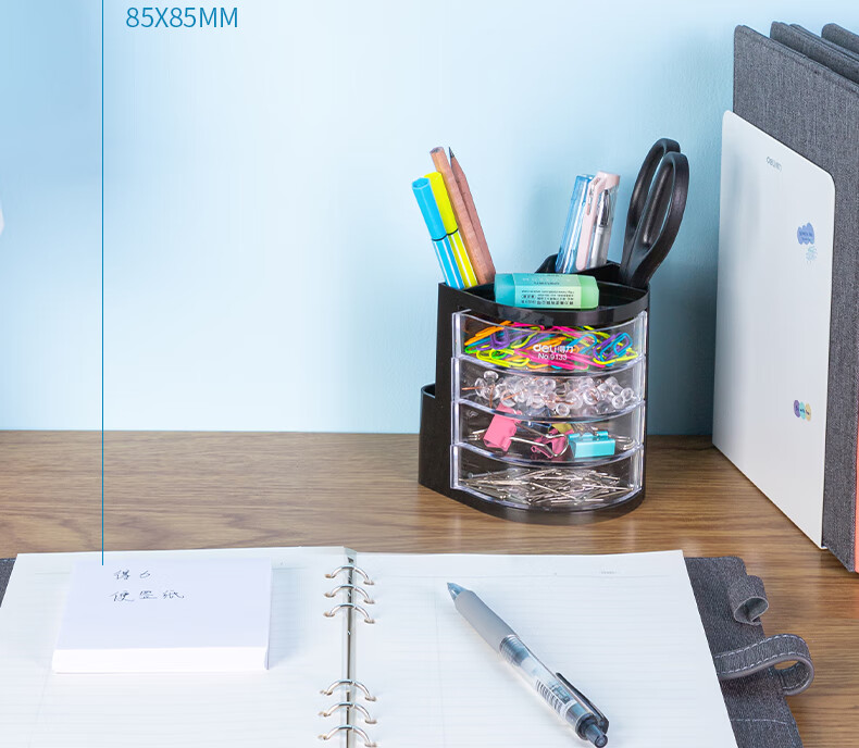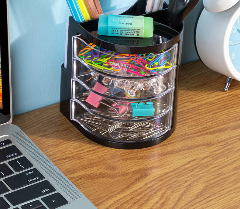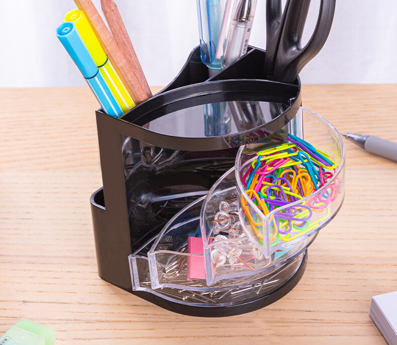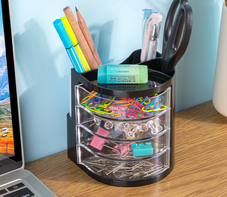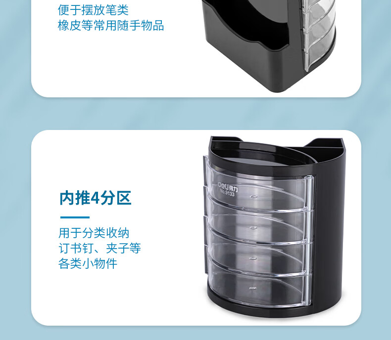 商品名稱:得力9133 四層多功能黑色筆筒 商務(wù)辦公桌面文具收納盒 單個(gè)裝