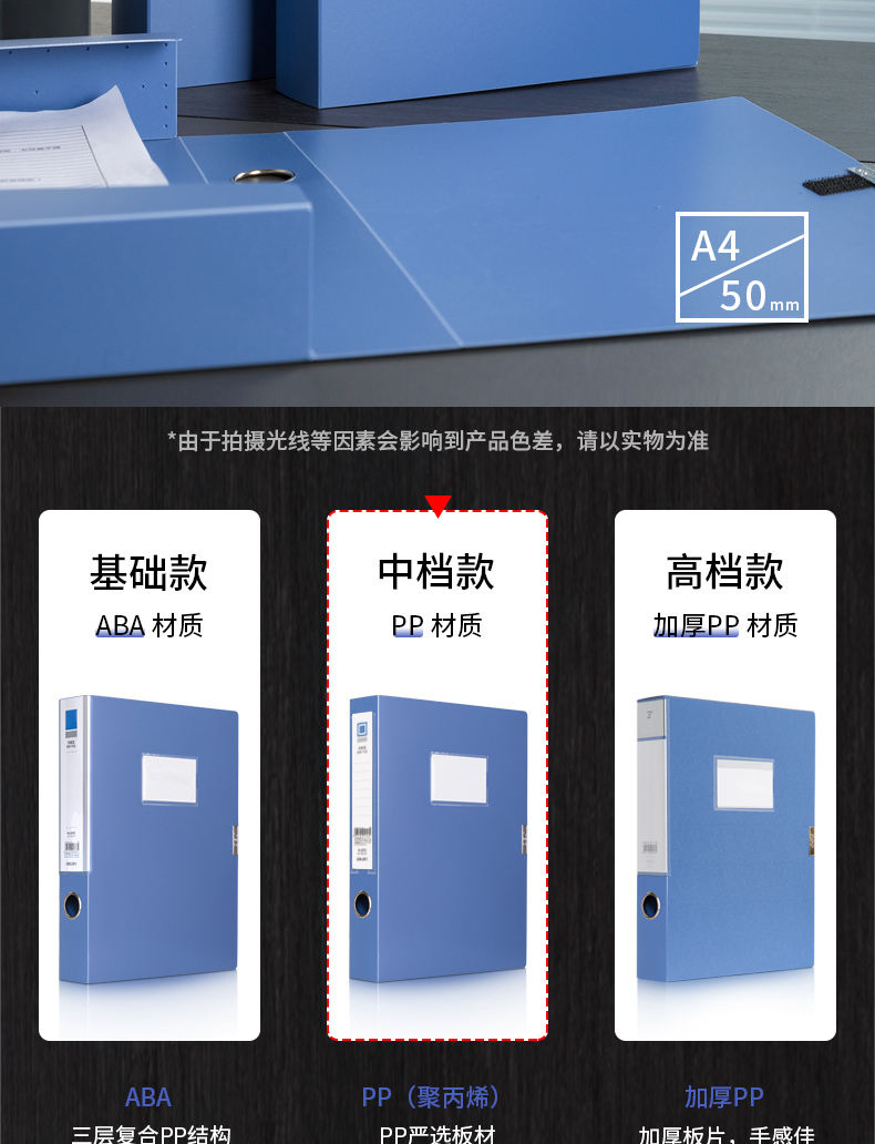 自營(yíng)得力5623 檔案盒 50mmA4加厚塑料文件盒財(cái)務(wù)憑證盒資料盒 單只裝