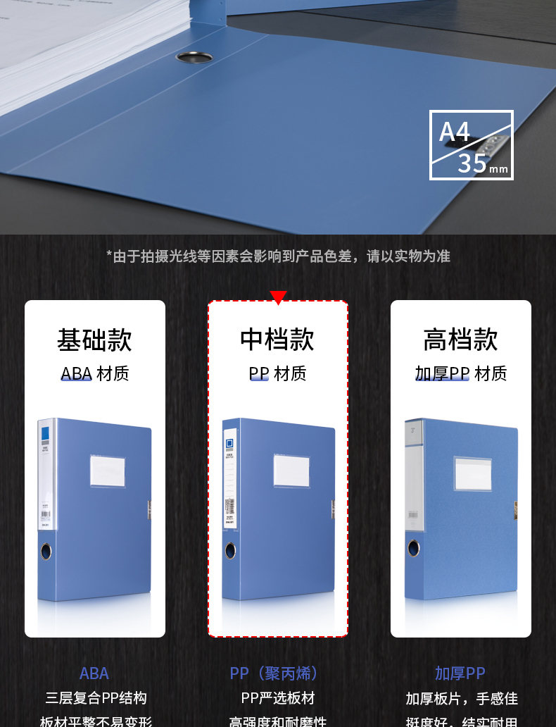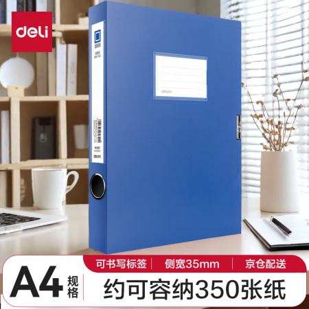 自營得力5622 檔案盒 35mmA4加厚塑料文件盒資料盒財務憑證盒 單只裝