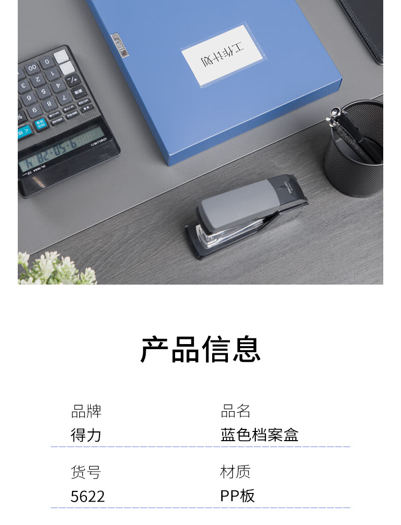 商品名稱:得力5622 檔案盒 35mmA4加厚塑料文件盒資料盒財務憑證盒 單只裝