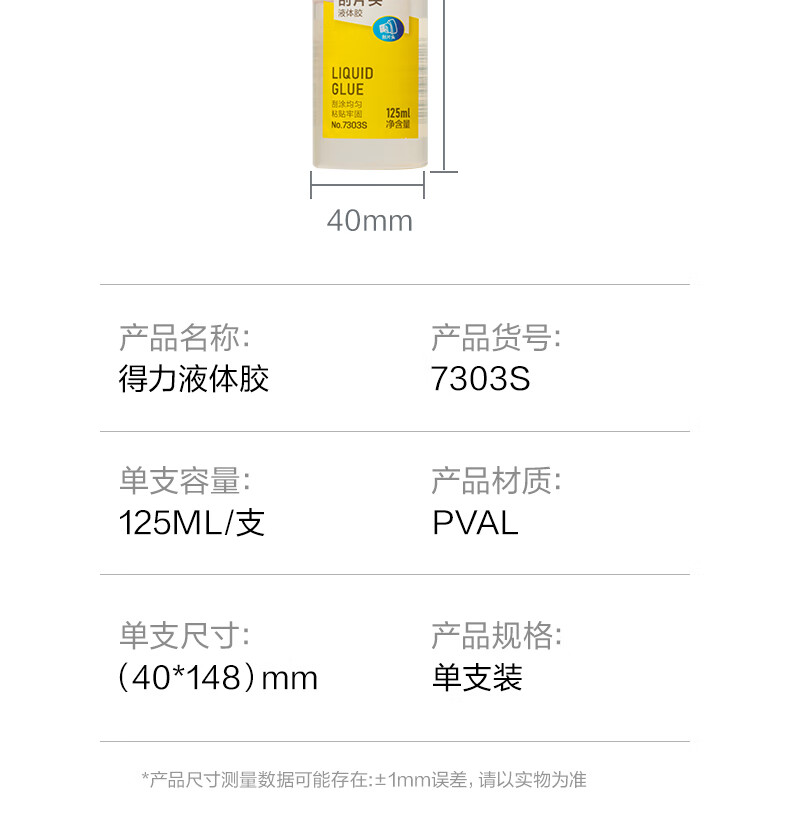 商品名稱:得力7303S 液體膠 125ml刷片膠頭高透明膠水 可水洗高粘液體膠 單支裝