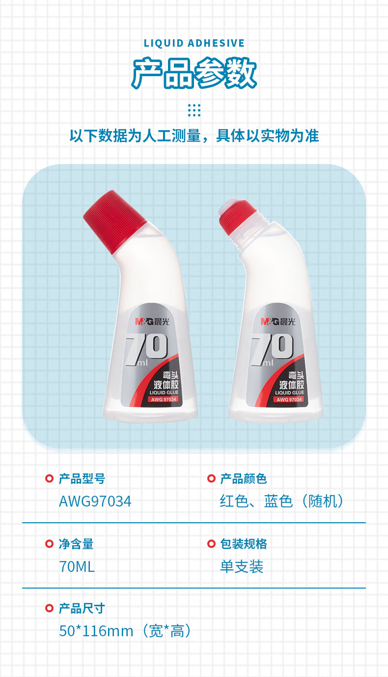 商品名稱(chēng):晨光AWG97034 彎頭液體膠水 70ml高粘度手工黏膠 單個(gè)裝 顏色隨機(jī)