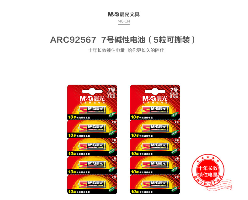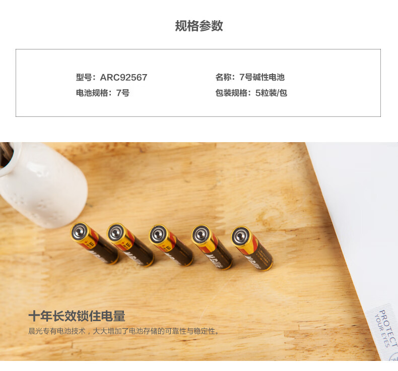 商品名稱:晨光ARC92567 7號(hào)堿性電池 可撕裝 5粒/卡