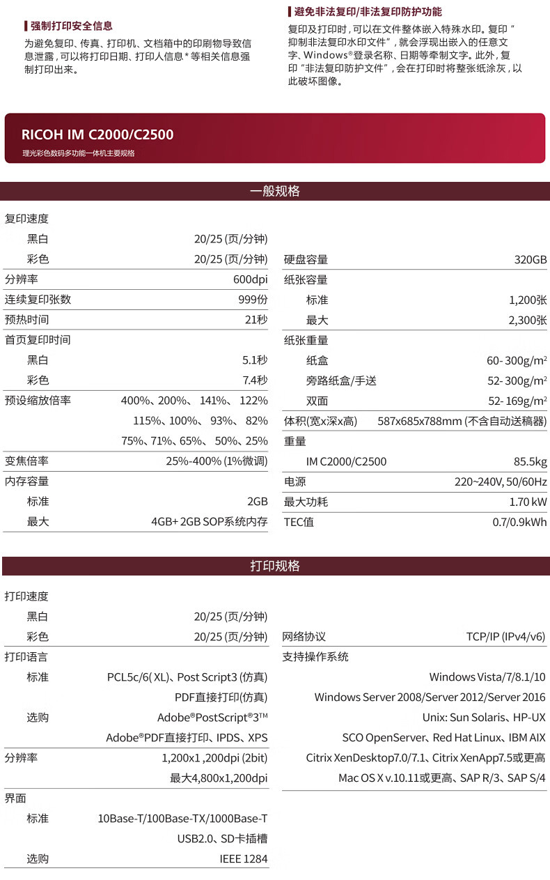 商品名稱:理光IM C2500彩色激光復(fù)印機(jī)租賃 茂名湛江A3打印機(jī)出租